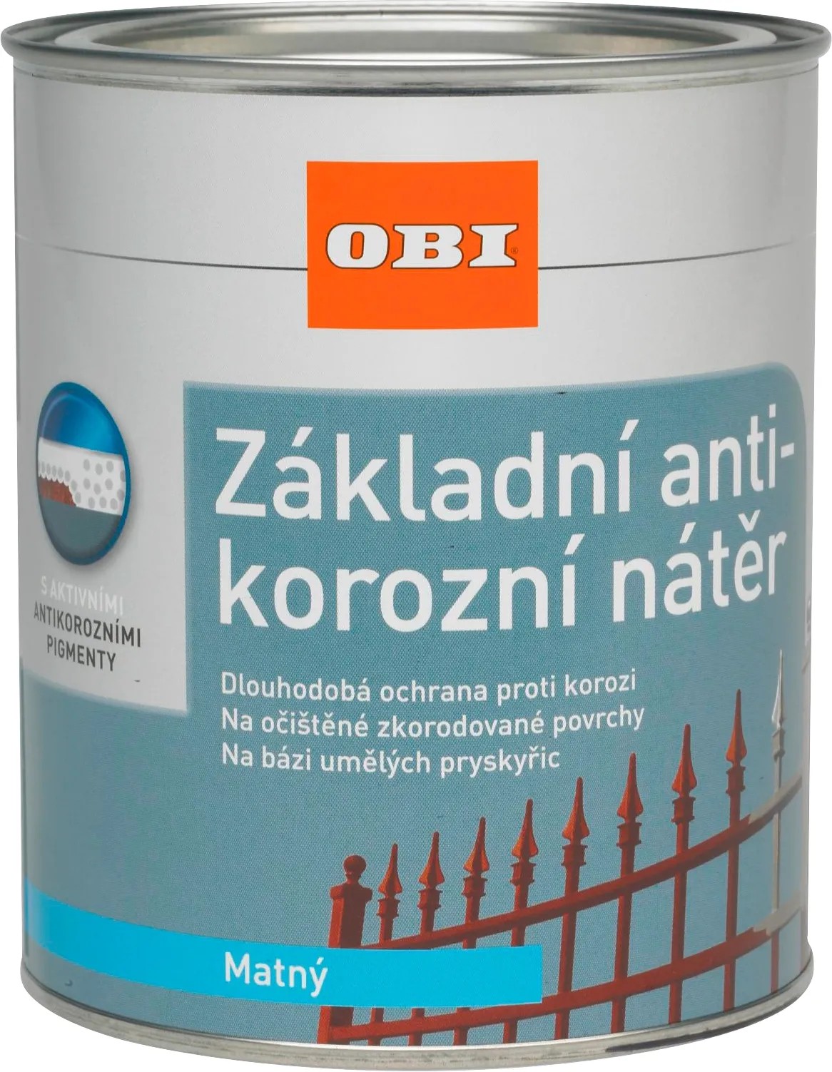OBI základní antikorozní nátěr je univerzální nátěr vhodný na očištěné zkorodované povrchy na bázi umělých pryskyřic a aktivními antikorozními pigmenty. Dlouhodobě chrání proti korozi. Ideální na hliník, měď a zinek.