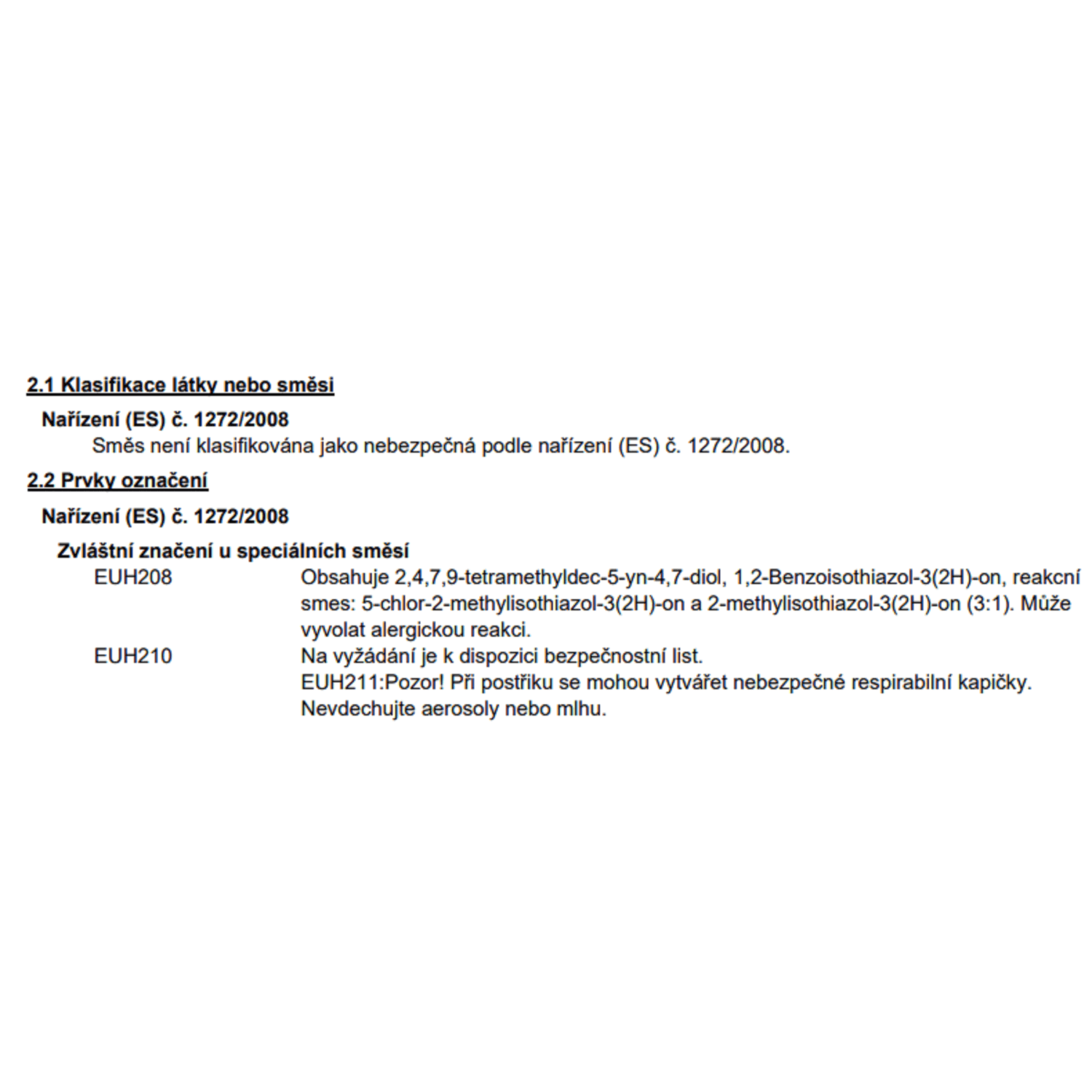 | Bez rozpouštědel: | Neobsahuje rozpouštědla |