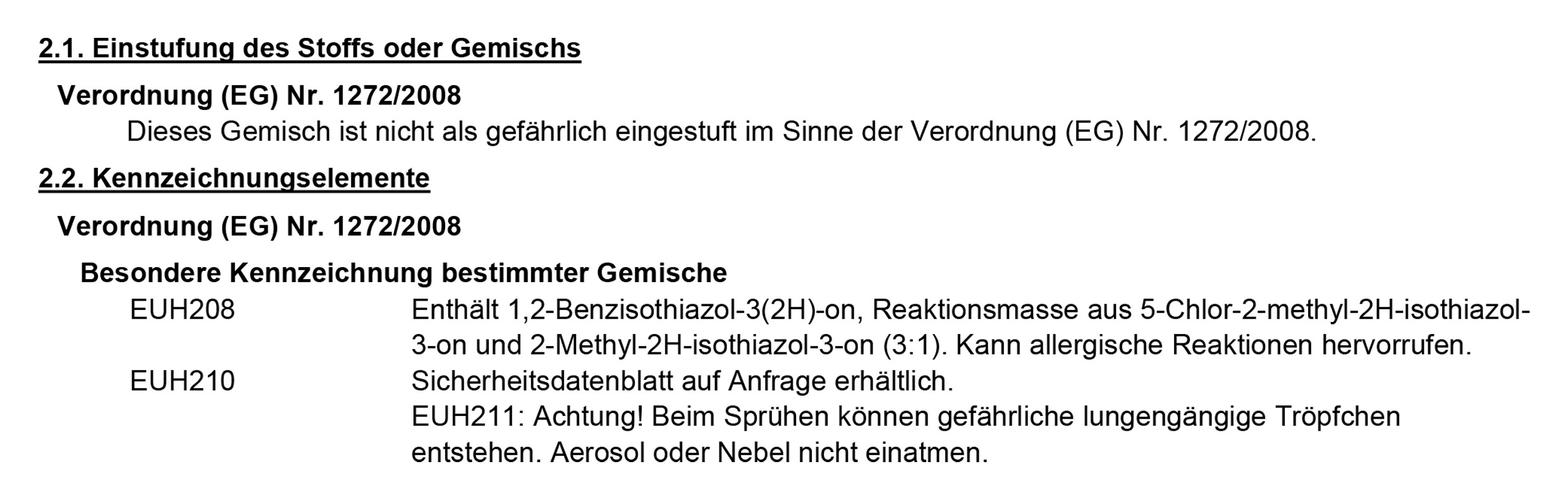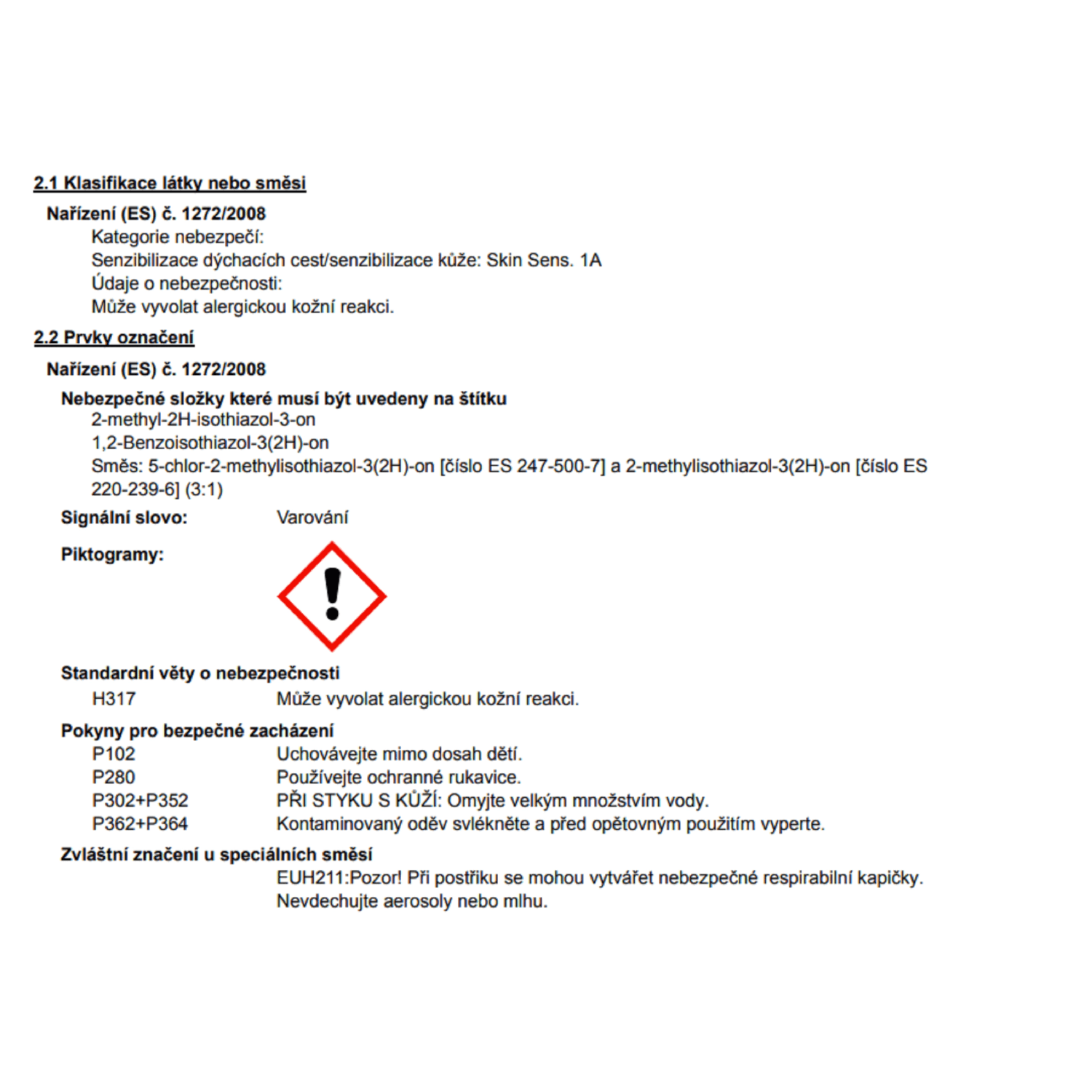 | Vhodné pro alergiky na isothiazolinon: | Nevhodné |