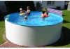- Ocelová stěna 0,4 mm - pozinkovaná, s ochranným lakem, zvenku opatřená plastovou povrchovou vrstvou. Kruhový bazén včetně ocelových nosníků a montážních dílů