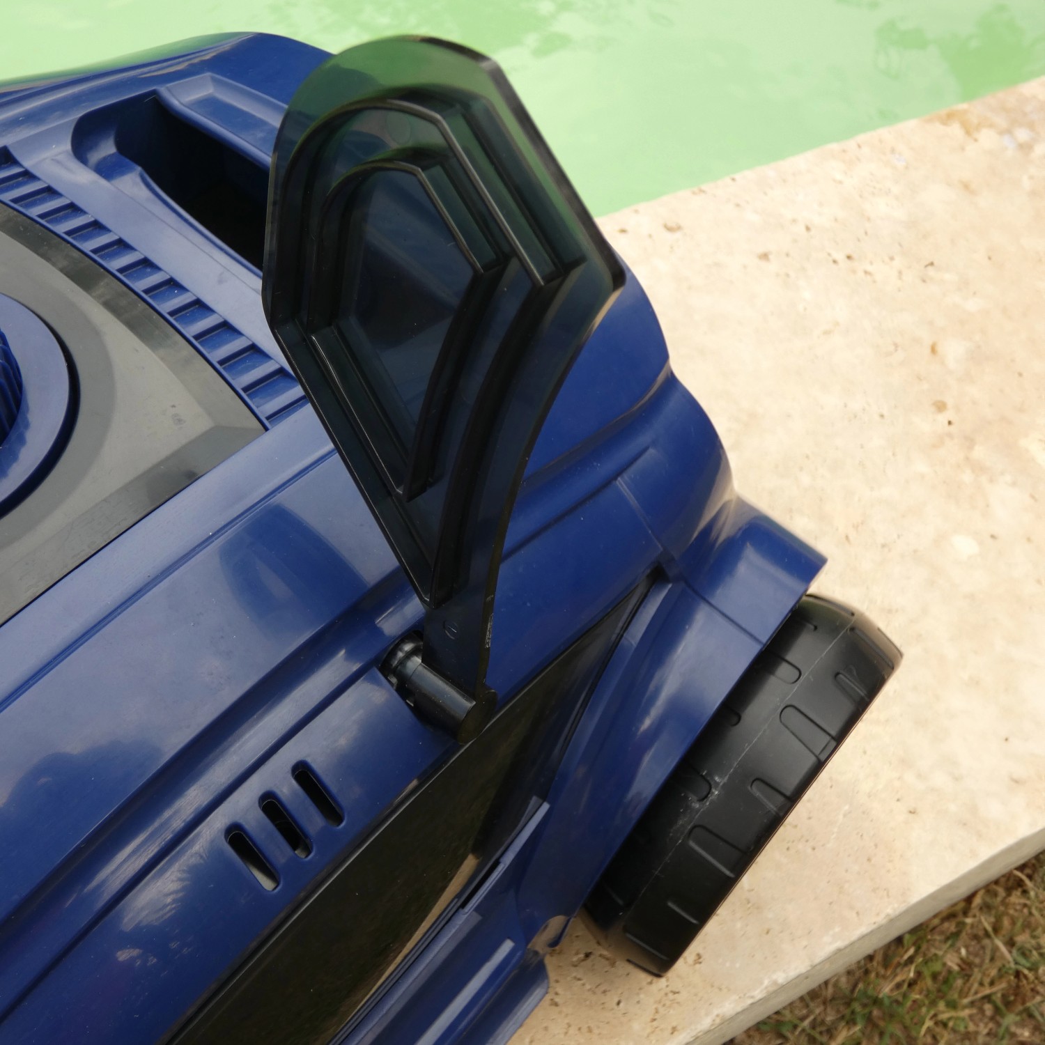 Spolehlivý pohonný systém s tryskou/kolečky zajišťuje přesnou navigaci v bazénu. Díky hnacímu motoru a motoru čerpadla nabízí vysavač silný sací výkon 10 m3/h. Jemnost filtru 180 mikronů zajišťuje důkladné čištění a přístup k filtru je navržen tak, aby byl snadný a uživatelsky přívětivý.