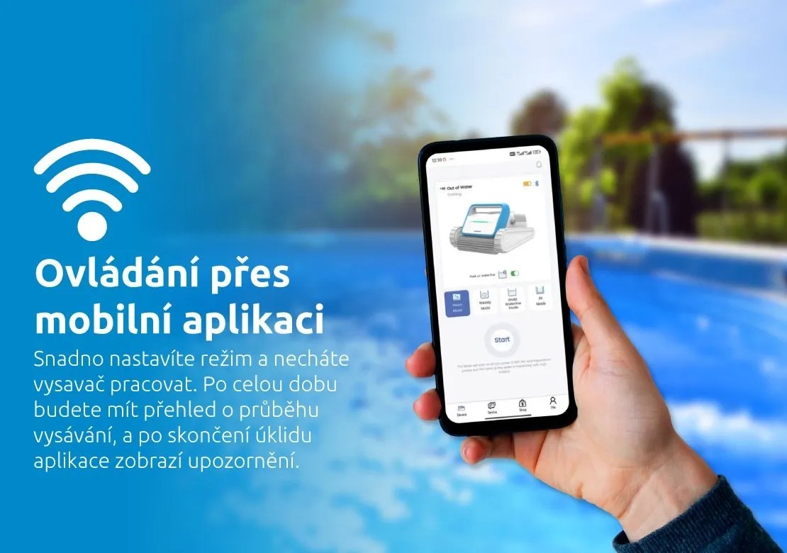 Vysavač je bezdrátový, po dně se pohybuje samostatně, bez nutnosti kabelů a usnadňuje tak samotný průběh čištění. Funkce automatického parkování u stěny zjednodušuje manipulaci a usnadňuje vyjmutí z bazénu po dokončení čištění. Bazénový vysavač je konstruován tak, aby bez problémů fungoval i ve slané vodě. Díky odolným materiálům a speciální úpravě si poradí s údržbou slaných bazénů stejně efektivně jako s klasickými.