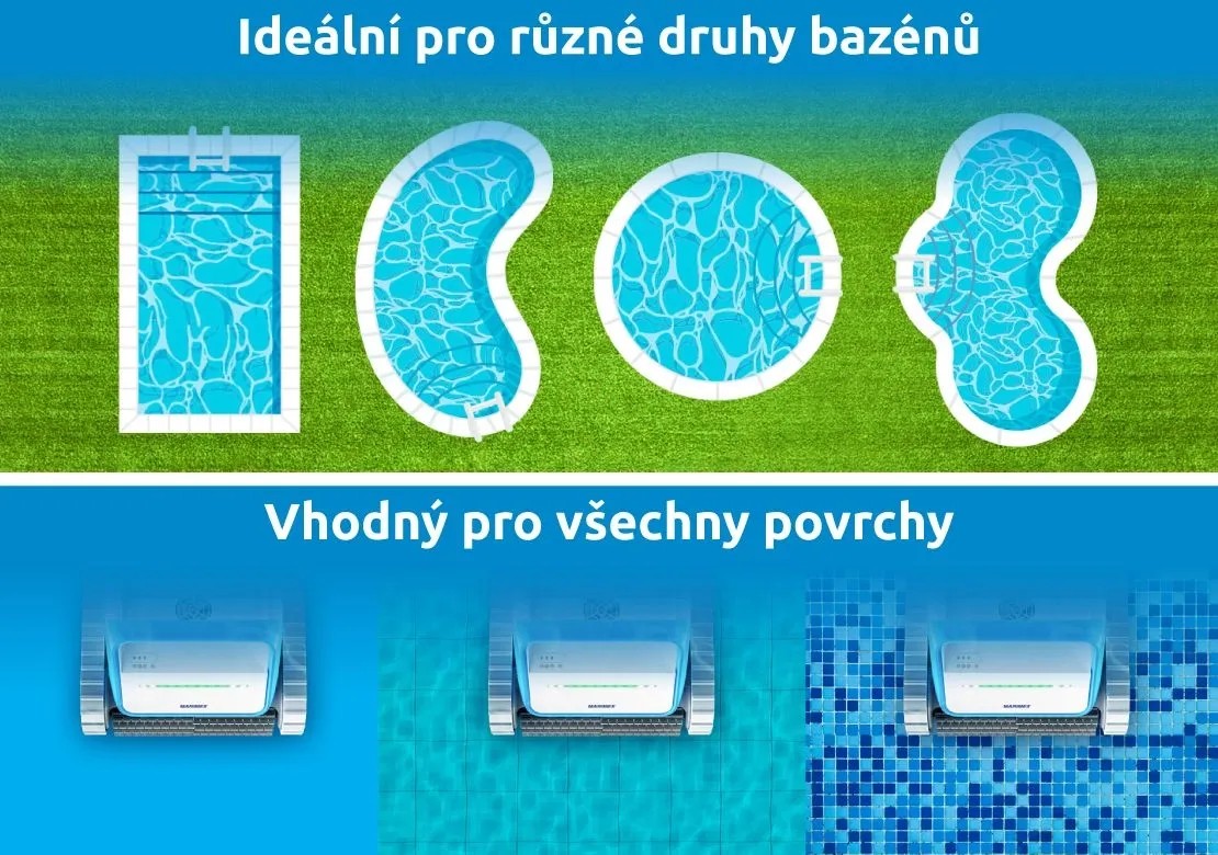- poradí si s různými typy bazénů a různými povrchy
