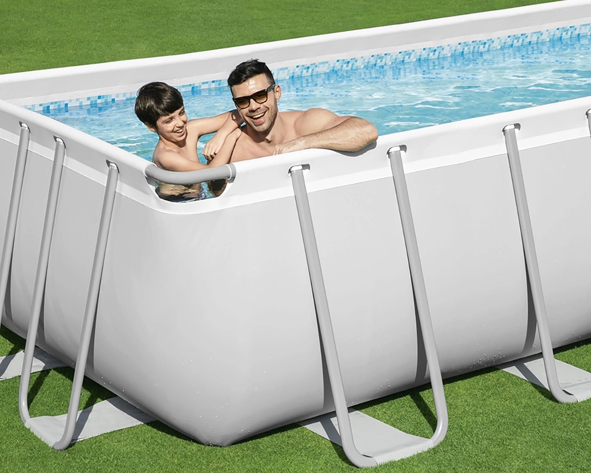 Prostorný bazén s ocelovým rámem Bestway Power Steel vám umožní užít si slunce bez pocení. Obdélníkový nadzemní bazén vám domů na zahradu vnese skutečný pocit prázdnin a chladivé osvěžení.