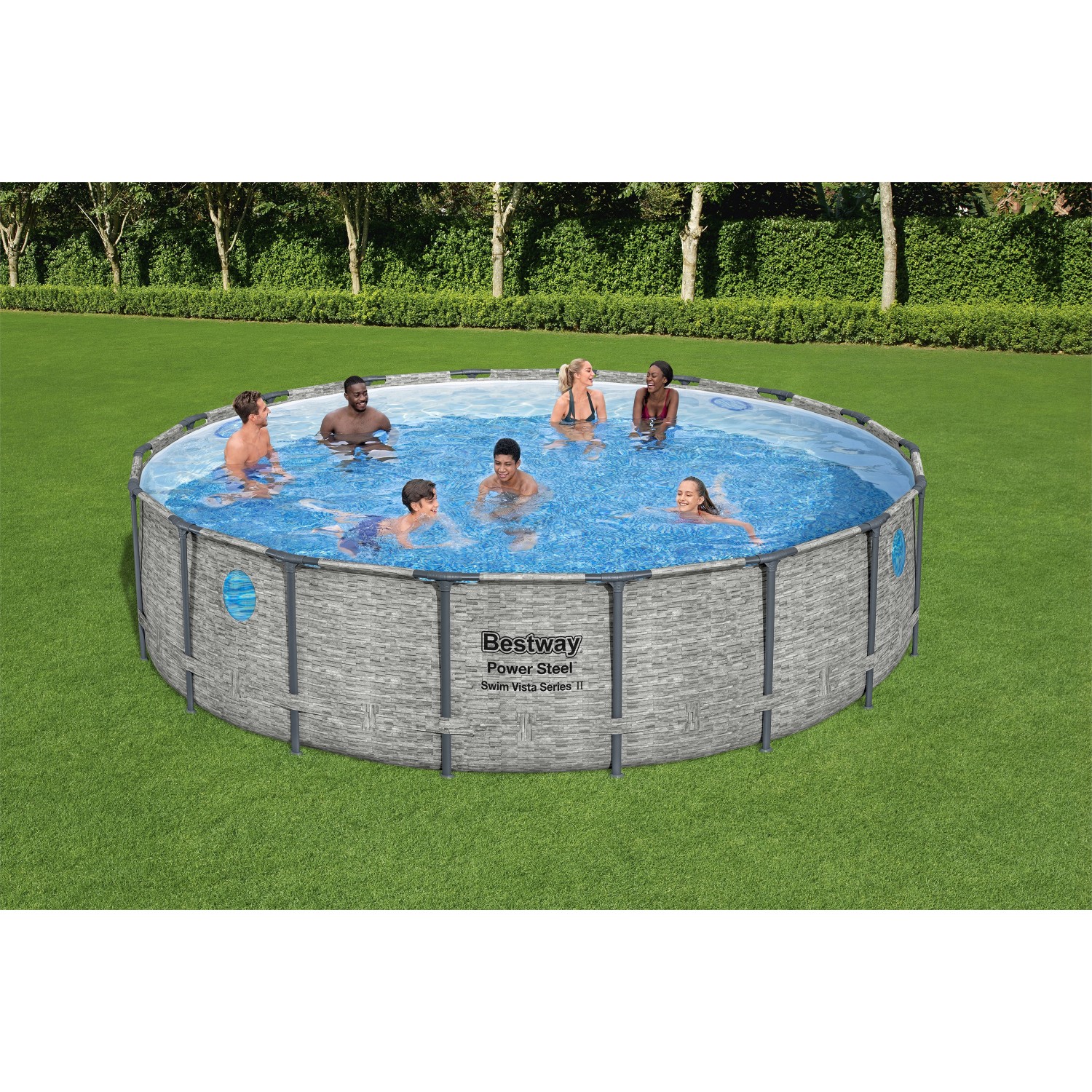 Bazén o rozměrech 549 x 122 cm (pr. x V) pojme při zaplnění z 90 % 23 062 litrů vody. Bezpečnostní schůdky usnadňují vstup do bazénu. Sada dále obsahuje pískové filtrační čerpadlo. Díky plachtě můžete svůj bazén v noci nebo za špatného počasí zakrýt.