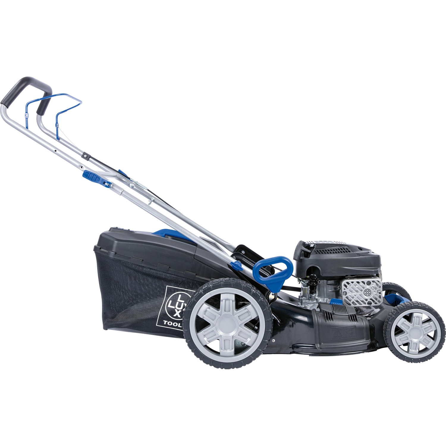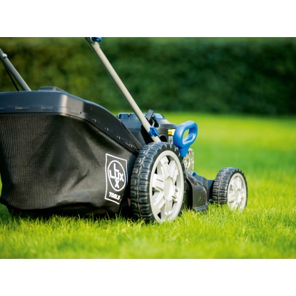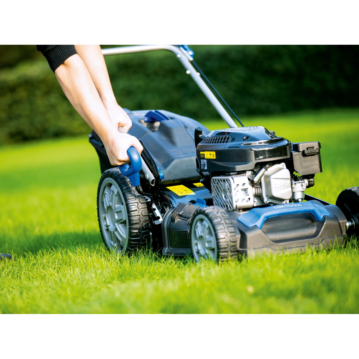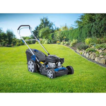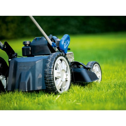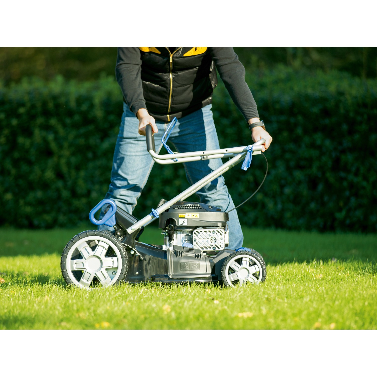 Pro snadnou jízdu je benzínová sekačka vybavena zadními koly s kuličkovými ložisky. Kola zároveň vyrovnávají nerovnosti terénu. Centrální nastavení výšky sečení lze snadno nastavit v sedmi různých stupních od 25 mm do 75 mm.