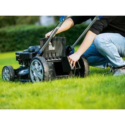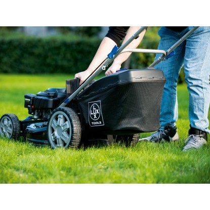 Aby se posečená tráva mohla aplikovat na trávník jako hnojivo, je sekačka na trávu vybavena mulčovací funkcí. Pro pohodlné sečení je vybavena ergonomickou rukojetí Softgrip. Benzínová sekačka na trávu je kromě toho vybavena vyztuženým sběrným vakem, který automaticky sbírá posečenou trávu. Má objem 60 l. Ukazatel stavu naplnění neustále informuje o stavu naplnění sběrného koše.