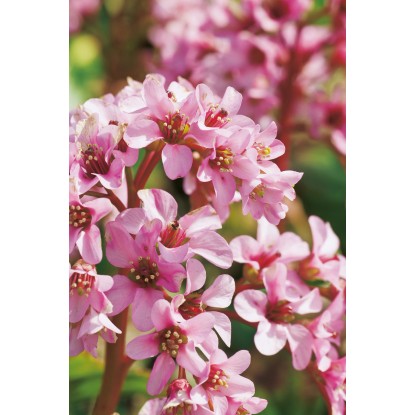 Bergénie srdčitolistá (Bergenia cordifolia) vytváří růžové květy od března do května. K opakovanému kvetení dochází při správné péči od listopadu do prosince. Velice vděčná je za prodyšnou půdu bohatou na živiny na polostinném místě v zahradě. Bergénie srdčitolistá dobře snáší zimu, i silnější mrazy. Tato vzpřímená, stálezelená trvalka dosahuje výšky cca 40 cm.