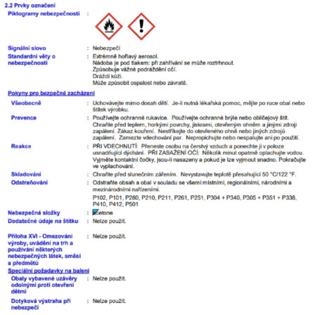 Doba schnutí při T 25 °C úplné zaschnutí: 24 hodin