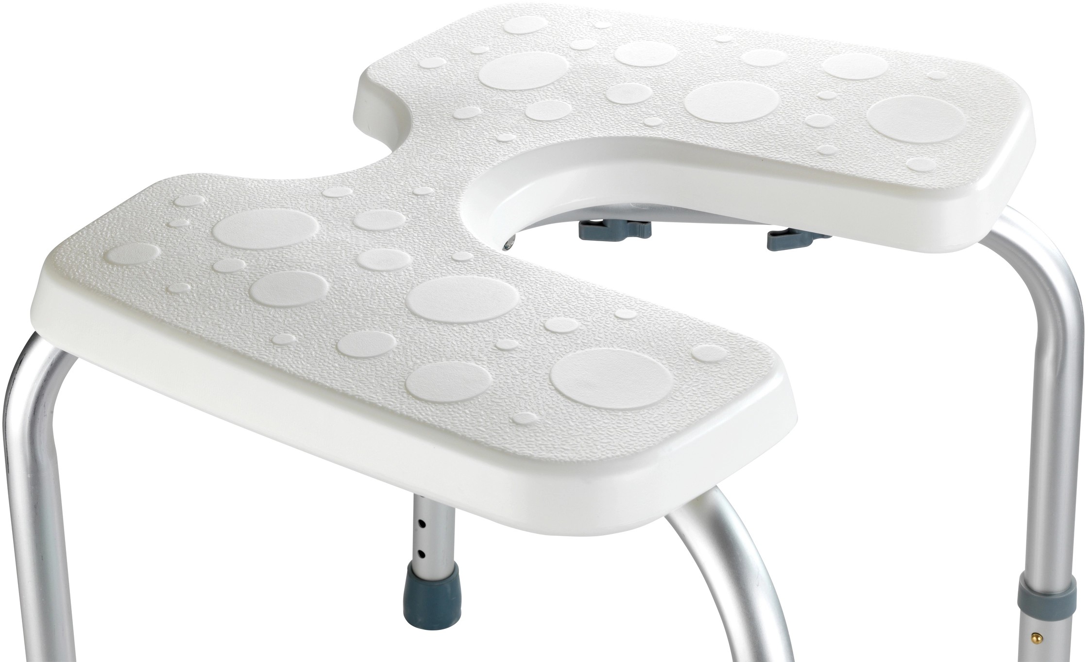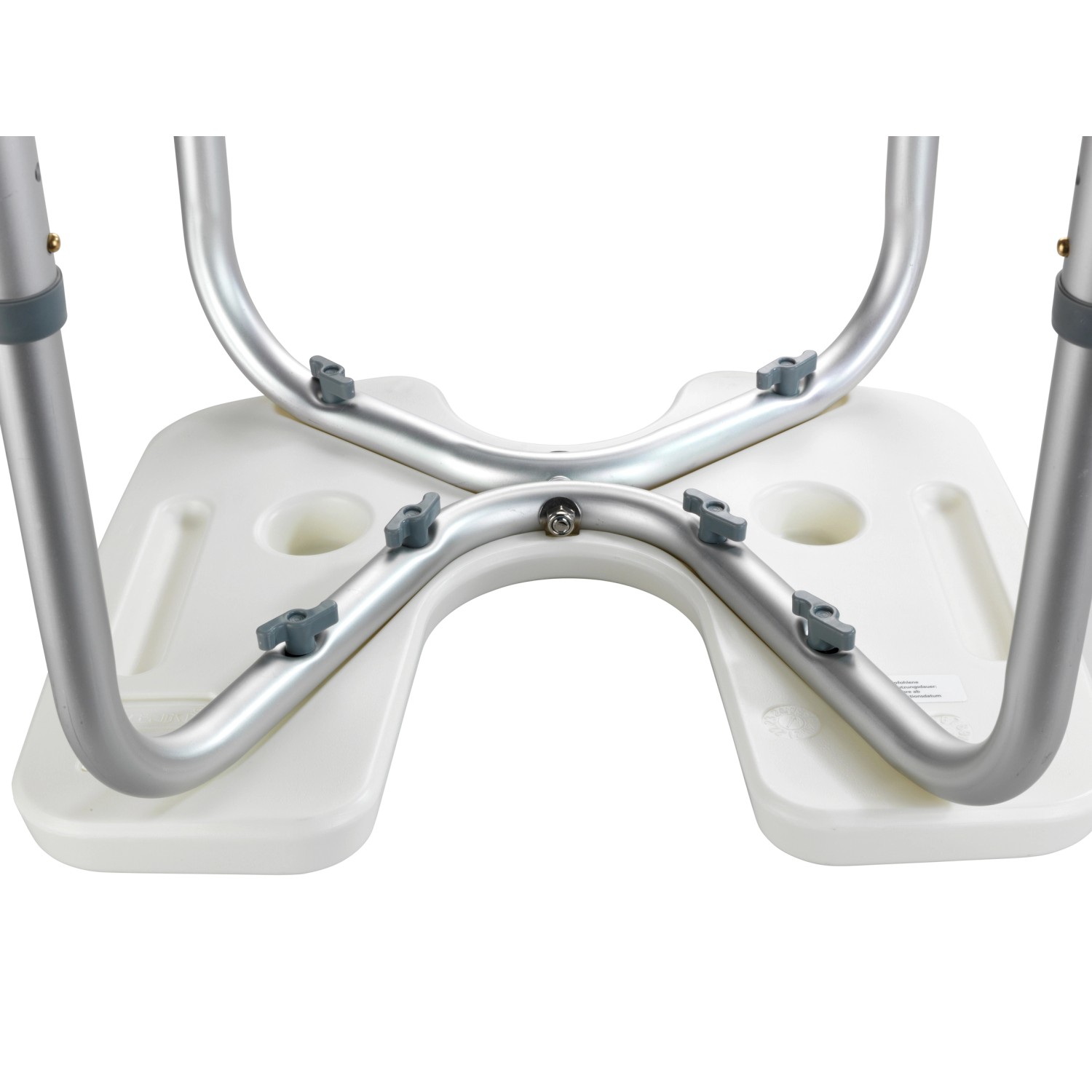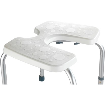 Stolička má nerezové hliníkové nožičky s gumovými krytkami. Výšku lze nastavit do 5 poloh v rozmezí 36-46 cm a má certifikaci TÜV podle nejnovějších předpisů. Nosnost je 120 kg. Koupelnové sedátko má šířku 46 cm, výšku 36-46 cm a hloubku 53,5 cm.