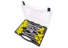 Tato sada šroubů na kempování Happy People je ideálním řešením pro bezpečné upevnění stanů a kempovacích přístřešků (celt) na různých površích. Díky kompaktním rozměrům přepravního boxu (cca 25 x 22 x 4,2 cm) představuje promyšlené vybavení pro outdoorové aktivity. Sada obsahuje 20 robustních šroubů s celozávitem o délce cca 20,5 cm a průměru 7,5 mm. Praktický adaptér (cca 13 mm) navíc umožňuje snadné zašroubování. Díky kompatibilitě s akumulátorovými šroubováky je upevnění obzvláště rychlé a snadné. Robustní černý vox s průhledným víkem zajišťuje přehlednost a bezpečnou přepravu. S hmotností 1,52 kg se se sadou snadno manipuluje. Perfektní pro kempování, festivaly nebo jiná outdoorová dobrodružství.