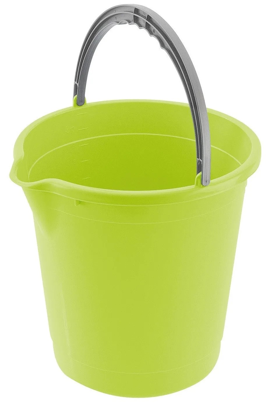 Praktický kbelík pro úklid, zahradničení a kutilské použití se sklopnou rukojetí a vylévacím hrdlem.