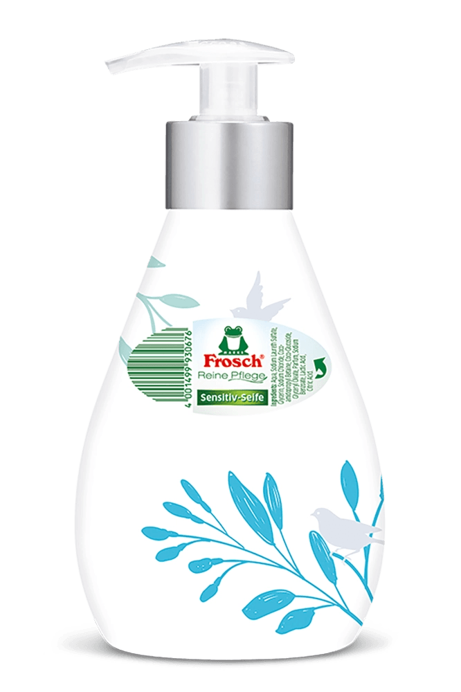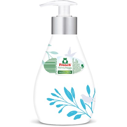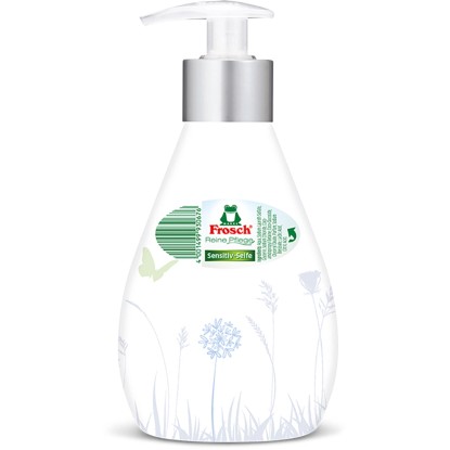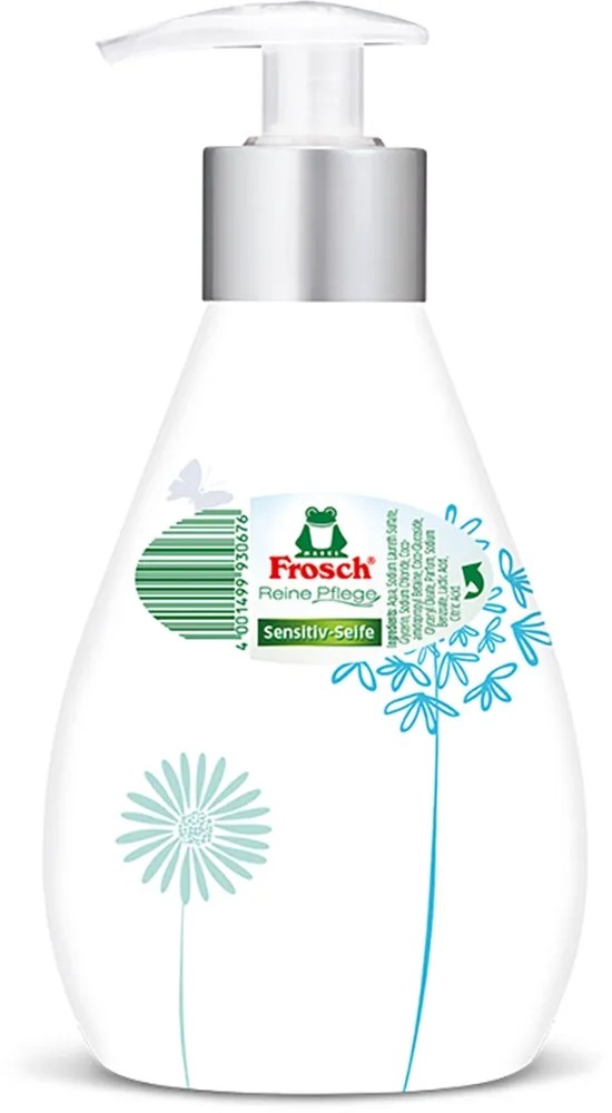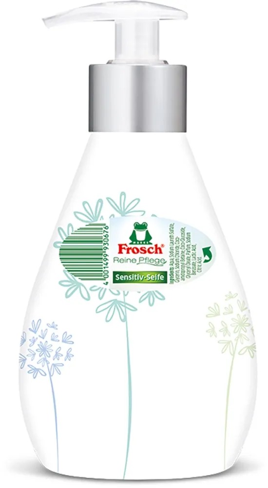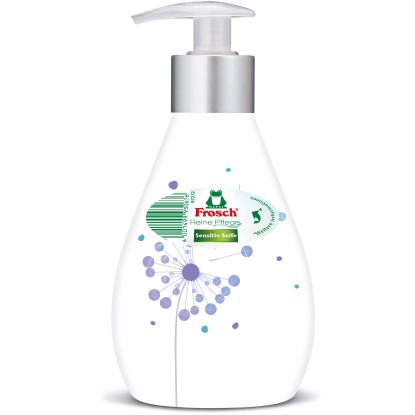 Frosch tekuté mýdlo čistí citlivou pokožku díky jemnému, pečujícímu složení a chrání ji před vysoušením pomocí citlivých a hydratačních složek při každém mytí rukou. K pokožce pH neutrální a dermatologicky testované mýdlo neobsahuje žádná barviva a svými cennými, hydratačními vlastnostmi podporuje přirozený ochranný kyselý plášť citlivé pokožky.