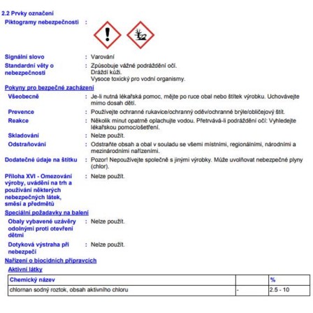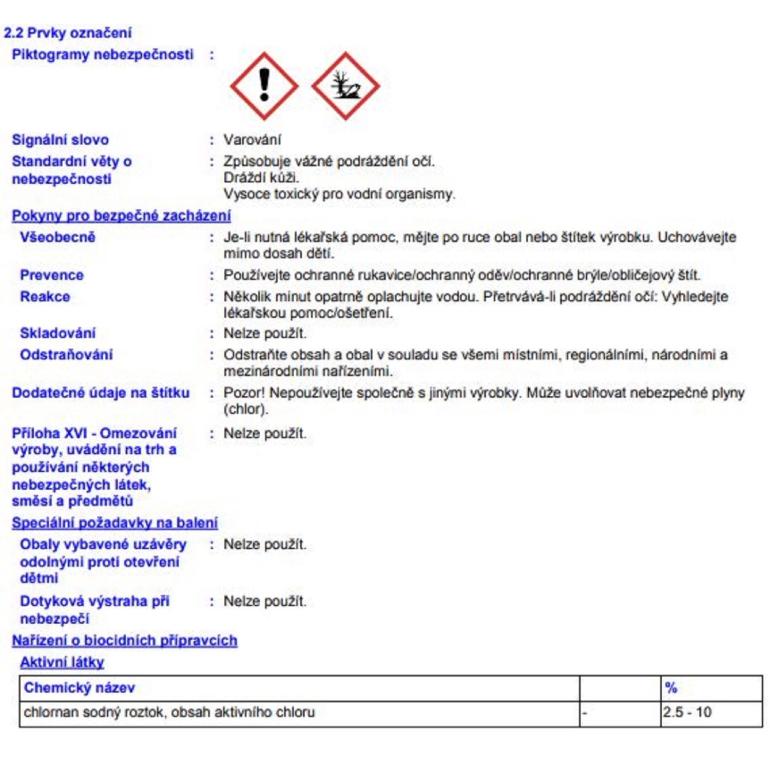 Používání tohoto prostředku je povoleno pouze za účelem odstraňování plísní (černý povlak), řas a mechů (zelený povlak) na vlhkých místech.