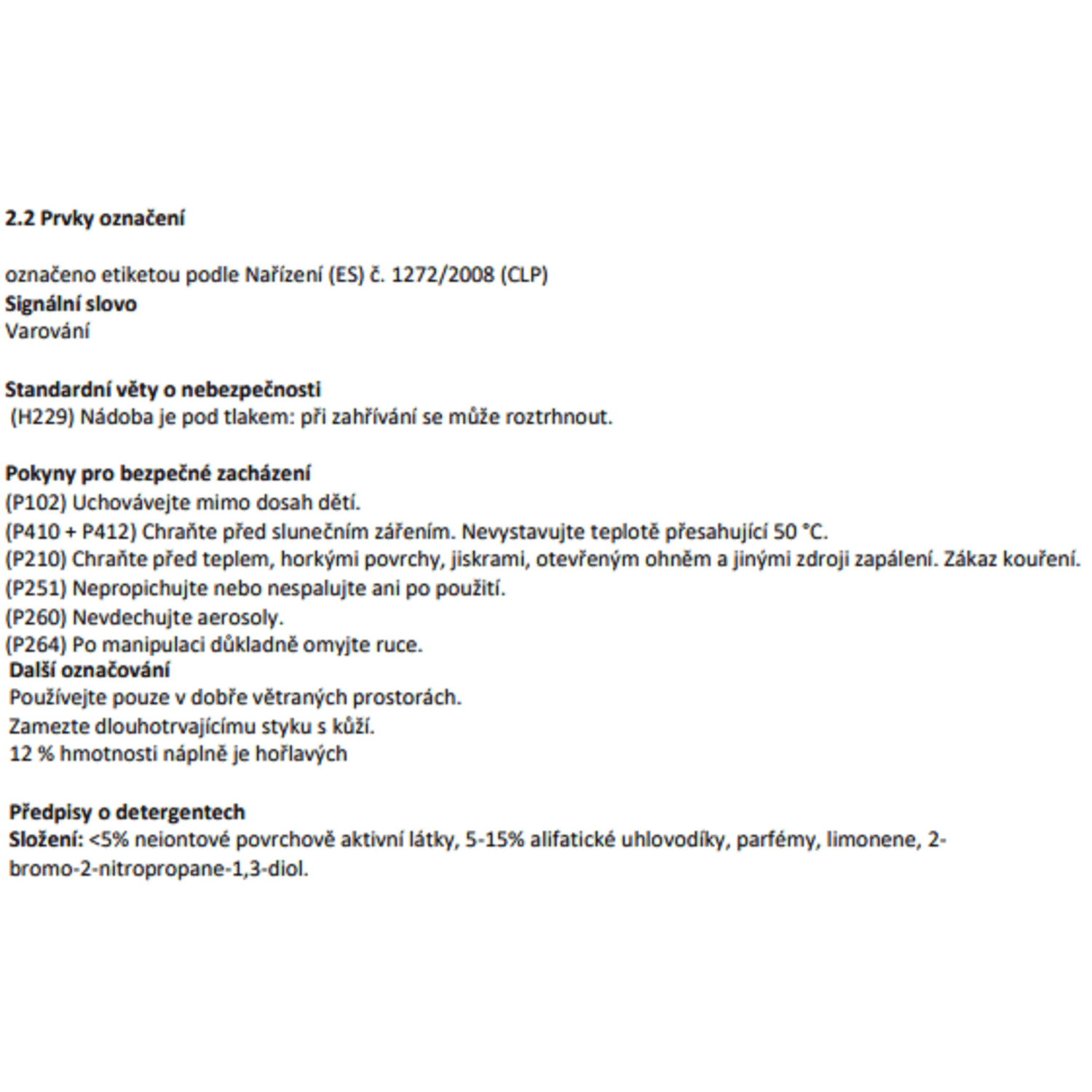 Údaje výrobce