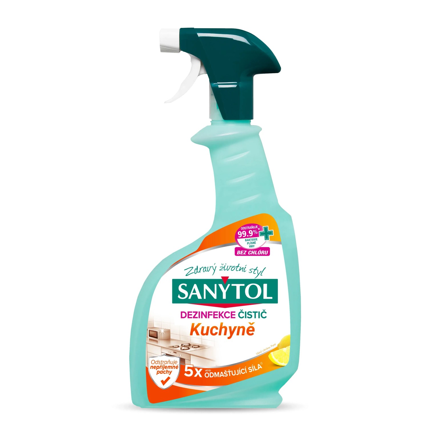 Pravidelný úklid a dezinfekce je jediný způsob, jak účinně zabránit šíření mikrobu v kuchyni. Sanytol vyvinul dezinfekční odmašťovač kuchyně, který bez námahy odstraní většinu odolných nečistot: mastnota, připálené jídlo. Odstraňuje bakterie způsobující zápach, zanechává povrchy čisté a lesklé s vůní svěžího citrónu.