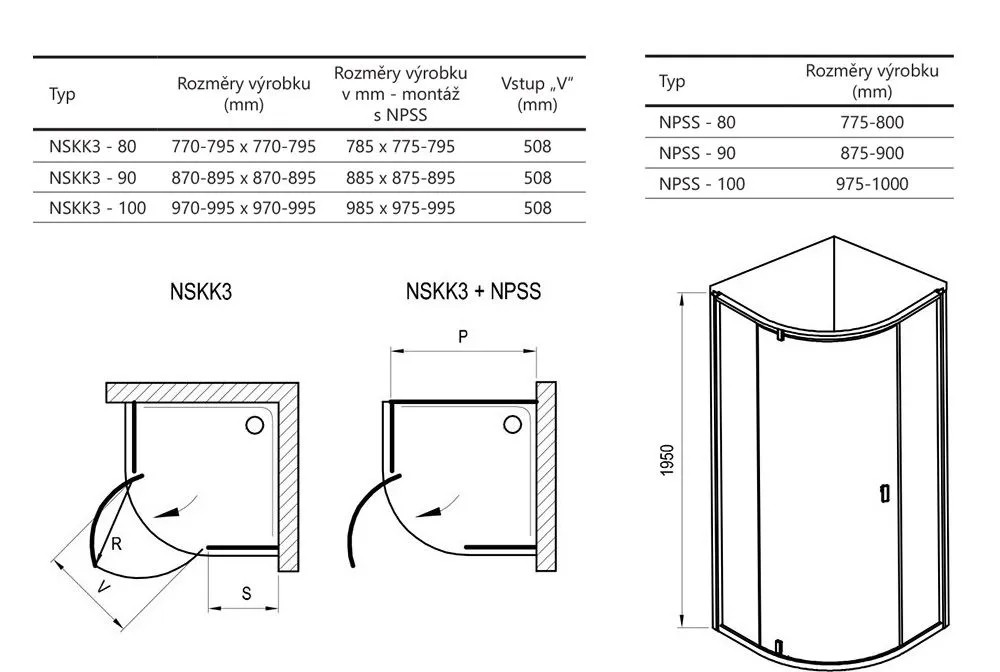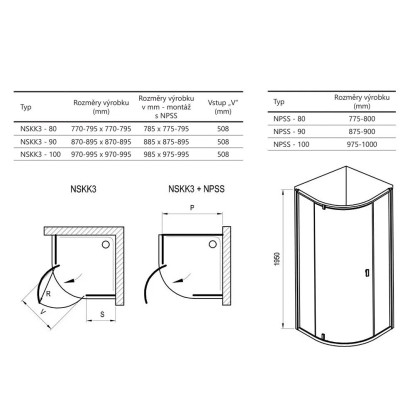 Výrobek tvoří dva pevné rovné díly a jeden ohýbaný díl jako otočné dveře. Otočením výrobku o 180° získáte levou nebo pravou variantu otevírání dveří. Montuje se do obloženého rohu koupelny na vaničky Ravak Ronda, Elipso, Elipso Pro, Elipso Pro Flat, Elipso Pro Chrome nebo přímo na podlahu se zabudovaným odtokovým žlabem či podlahovou vpustí. Pokud nedisponujete vyzděným rohem, příčku můžete nahradit pevnou stěnou typu NPSS. Pomocí nastavovacích profilů NNPS se výrobek umí přizpůsobit stavebnímu otvoru až o 4 cm na každé straně.