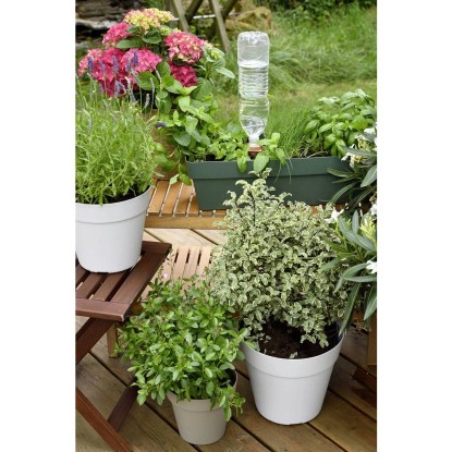 Keramické zavlažovací hroty AQUASOLO s univerzálním adaptérem poskytují vysoce přesné zavlažování rostlin v květináčích, když jste pryč nebo když je prostě občas zapomenete zalít. Hroty jsou vybaveny univerzálním adaptérem, na který lze umístit prakticky jakoukoli láhev od 0,5 do 2 litrů. Zajišťuje, že vaše rostliny budou zavlažovány až 29 dní v řadě, v závislosti na velikosti vašeho květináče a hrotu.