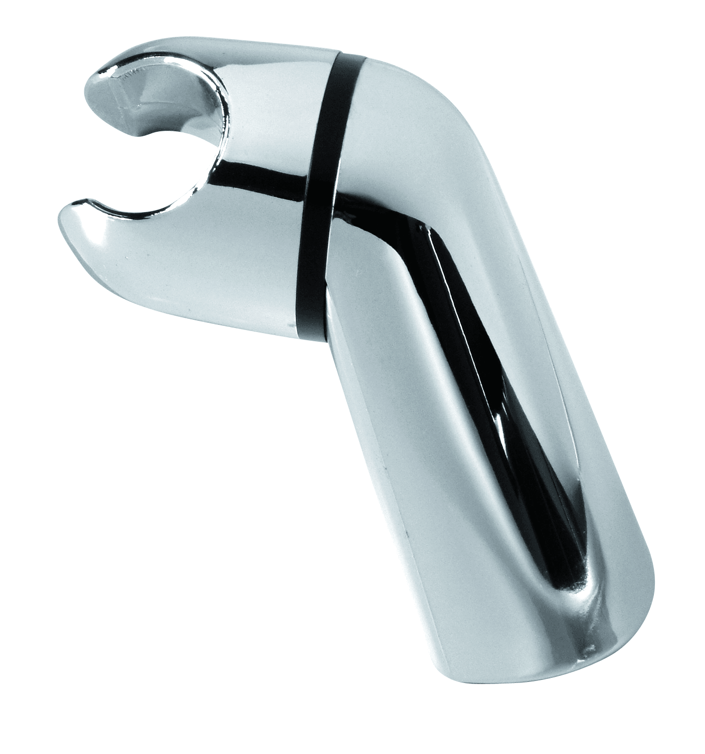 Otočný plastový držák sprchy v moderním chromovém provedení. Rozměry 105 x 55 x 85 mm.