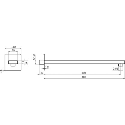 Novaservis Rameno pevné sprchy ze stěny RAM405,0 hranaté, chrom, 400 mm