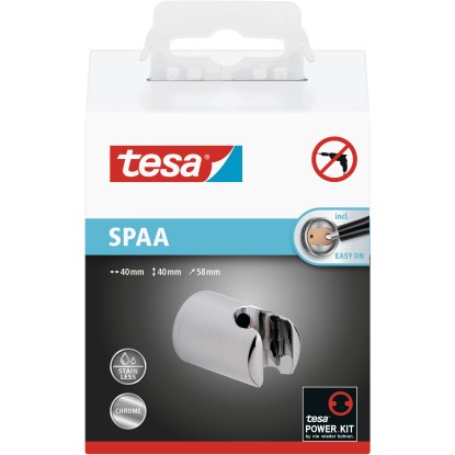 tesa Držák sprchové hlavice na stěnu Spaa, chrom, 40 x 40 x 58 mm