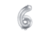 PartyDeco Balón fóliový číslo "6", 35 cm, stříbrný