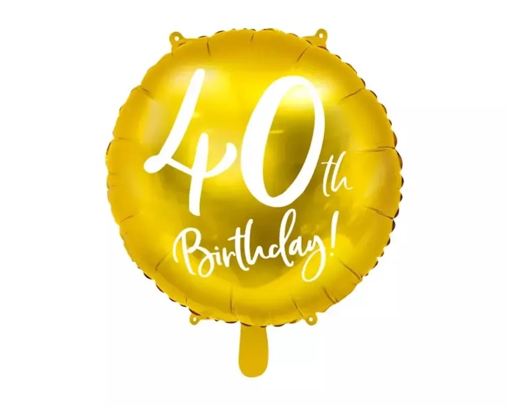 Originální kulatý fóliový balónek ve zlaté barvě s bílou číslicí 40 doladí Vaší párty k dokonalosti. Balónek je vhodný k zavěšení do prostoru, k dozdobení narozeninového stolu nebo po naplnění balónku héliem nechat balónek volně vznášet v prostoru.