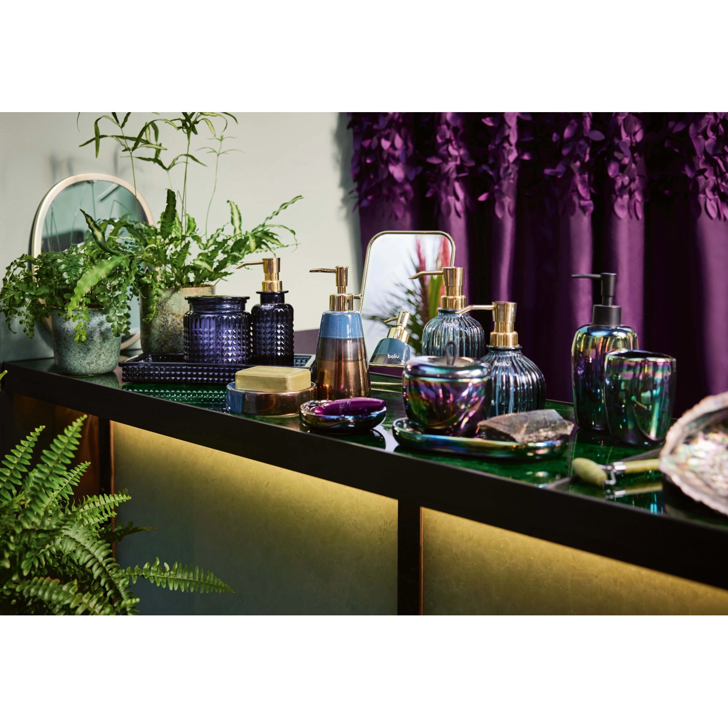 S baliv dávkovačem mýdla získá váš domov stylový koupelnový doplněk. Díky atraktivní barevné kombinaci hnědé a modré barvy upoutá pozornost na umyvadle. Dávkovač má skvělý vzhled díky pumpičce zlaté barvy. Jednoduše naplňte dávkovač mýdla oblíbeným mýdlem a můžete začít každodenní umývání rukou. Do plnitelného zásobníku se vejde až 400 ml tekutého mýdla. To je dobré pro vás i životní prostředí.