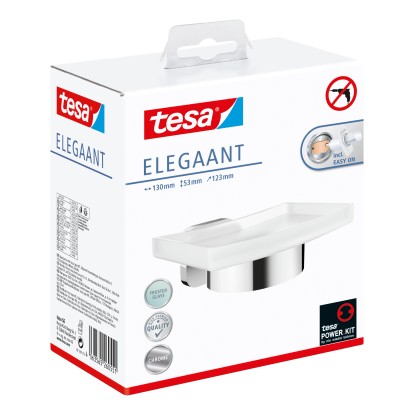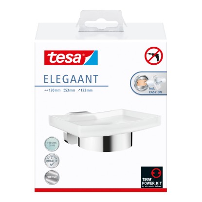 Se zaobleným držákem na mýdlo na ruce tesa Elegaant můžete získat mýdlo z atraktivního zdroje z vysoce lesklého chromu a matného skla. Díky lepidlu použitému při montáži jej lze umístit tam, kde je nejlépe dosažen. Protože není potřeba žádné vrtání ani další nástroje, stěny a obklady zůstávají nedotčené. Lepidlo vyžaduje 12 hodin schnutí, aby dosáhlo své špičkové pevnosti. Dávkovač lze kdykoli beze stopy demontovat a znovu použít s novým adaptérem BK20 na novém místě.