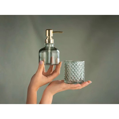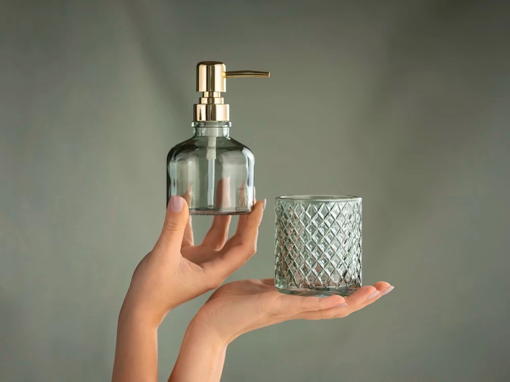 Série Atessa značky WENKO odráží s veškerým půvabem a elegancí teorii doby. Koupelnové doplňky ze skla v moderních barvách šíří okouzlující charisma. Koupelnové doplňky Atessa harmonicky zapadnou do světlých koupelen, na bílý nábytek nebo dřevěný nábytek. Dávkovače tekutého mýdla jsou doplněny pumpičkou zlaté barvy, kelímky na zubní kartáčky upoutají pozornost svým strukturovaným povrchem.