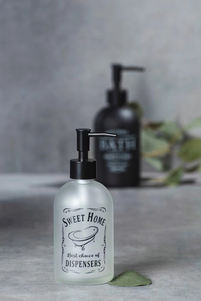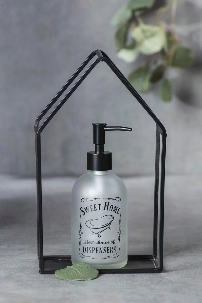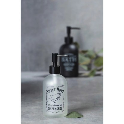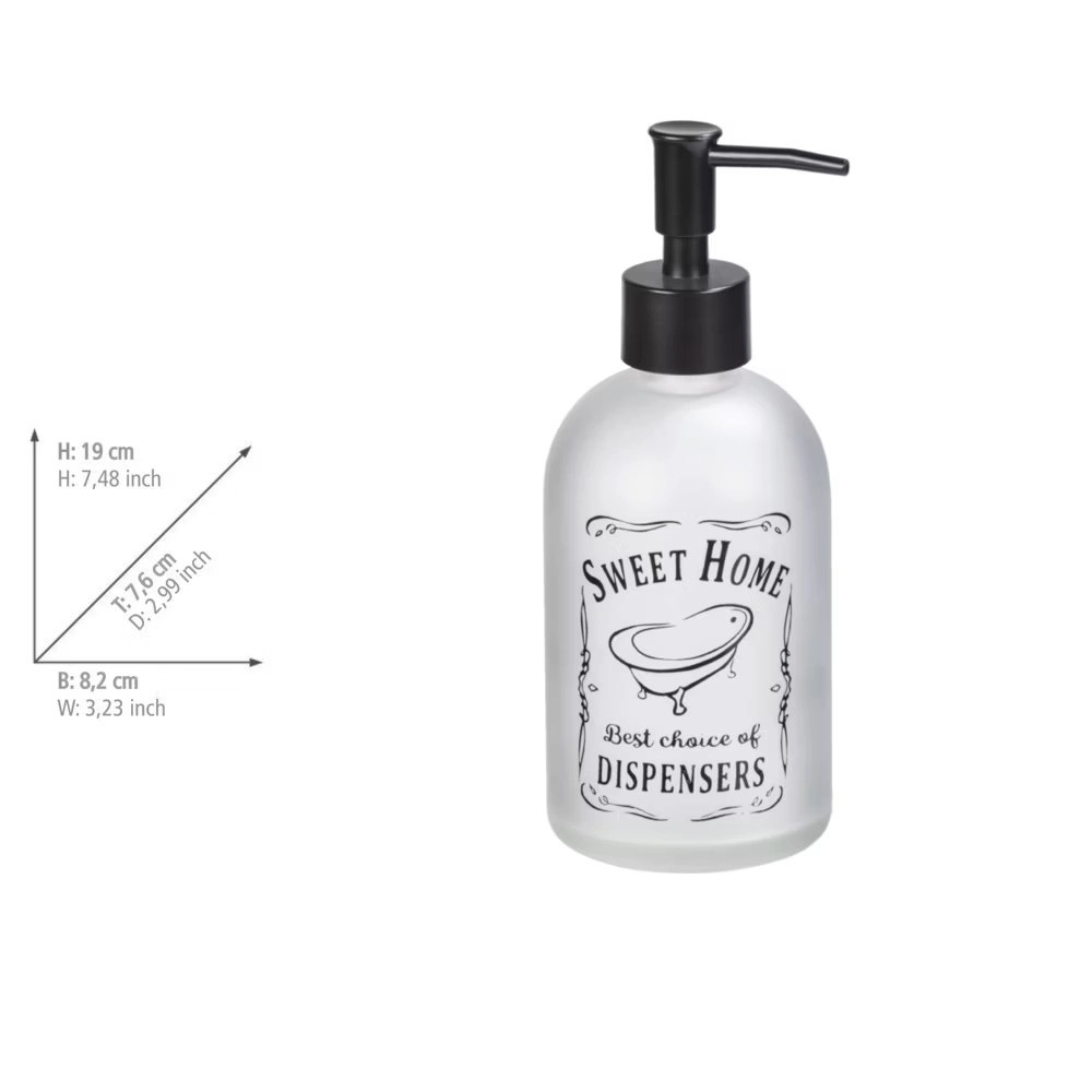 Doma je to přece nejhezčí! Dávkovač mýdla Sweet Home značky WENKO z odolného skla zaručuje stabilitu. Robustní dávkovač s pumpičkou se snadno začlení do vašeho stávajícího interiéru. Stabilní skleněná láhev působí díky průhlednému vzhledu stříbrně a matně, mléčný vzhled skla zajišťuje, že je láhev průhledná pouze akcentně. Pumpička dávkovače je vyrobena z černého plastu, čímž se barevně odlišuje od zbytku skleněné lahve. Dávkovač o rozměrech 8,2 x 19 x 7,6 cm vynikne nejen díky svému bohatému tvaru, ale zároveň pojme velký až 400 ml tekutého mýdla. Stabilní láhev spolehlivě poslouží také jako dávkovač mycího mléka a dávkovač dezinfekčního prostředku. Díky krátkému, úzkému výtokovému ramínku, které se vertikálně natahuje od lahve, je zajištěno čisté dávkování naplněné tekutiny.