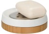 Volně stojící mýdlenka v kombinaci porcelánu a dřeva, moderní a jednoduchý design. Velmi trendy.
