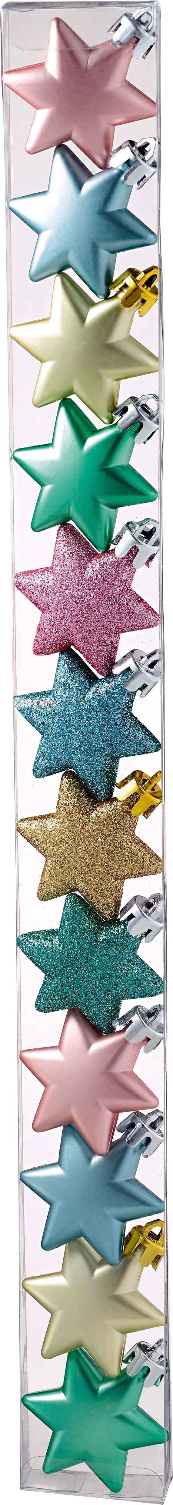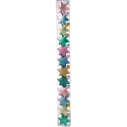 Pestré ozdoby na vánoční stromek se hodí k ozdobení vašeho vánočního stromku. Sada obsahuje 12 hvězd vyrobených z plastu. Hvězdy v korálové, světle modré, tyrkysové a zlaté barvě jsou v lesklém nebo matném provedení. Mají průměr 4 cm.