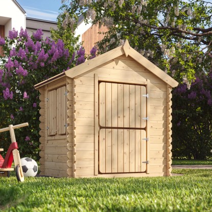Naše domky na hraní pro děti jsou vyrobeny ze severské borovice a smrku, tvoří je masivní panely s drážkou a perem s křížovou konstrukcí. Desky o tloušťce 19 mm a střecha z dřevěných prken o tloušťce 11 mm zaručují stabilitu a dlouhou životnost. Díky návodu k montáži a bezpečnému obalu sestavíte domeček na hraní venku snadno sami nebo ve dvou.