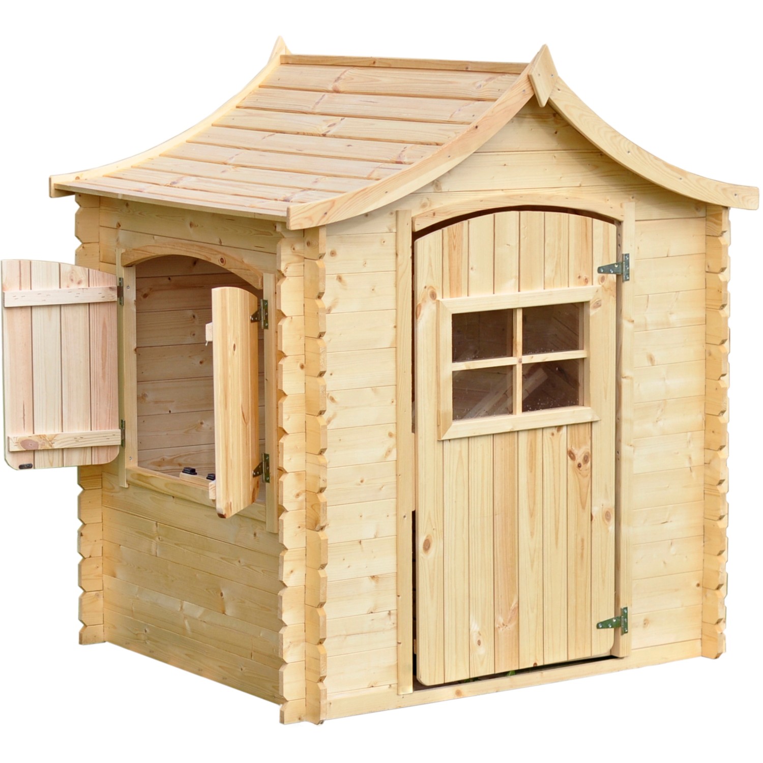 Jedinečná konstrukce dřevěného domečku na hraní Timbela M550-1 1,1 m2 v japonském stylu poskytuje vašim dětem obzvláště kreativní prostředí na hraní. Má okno s okenicemi, vstupní dveře a speciální střechu v japonském stylu. Je certifikován dle EN-71-1, 2, 3, 8 a okna a dveřní rámy jsou konstruovány s mezerou 15-20 mm, aby nedošlo ke skřípnutí prstů. Podlaha není součástí dodávky. Desky o tloušťce 19 mm a střecha z dřevěných prken o tloušťce 11 mm zaručují stabilitu a dlouhou životnost. Panely domečku na hraní jsou vyrobeny z vysoce kvalitního dřeva z EU.