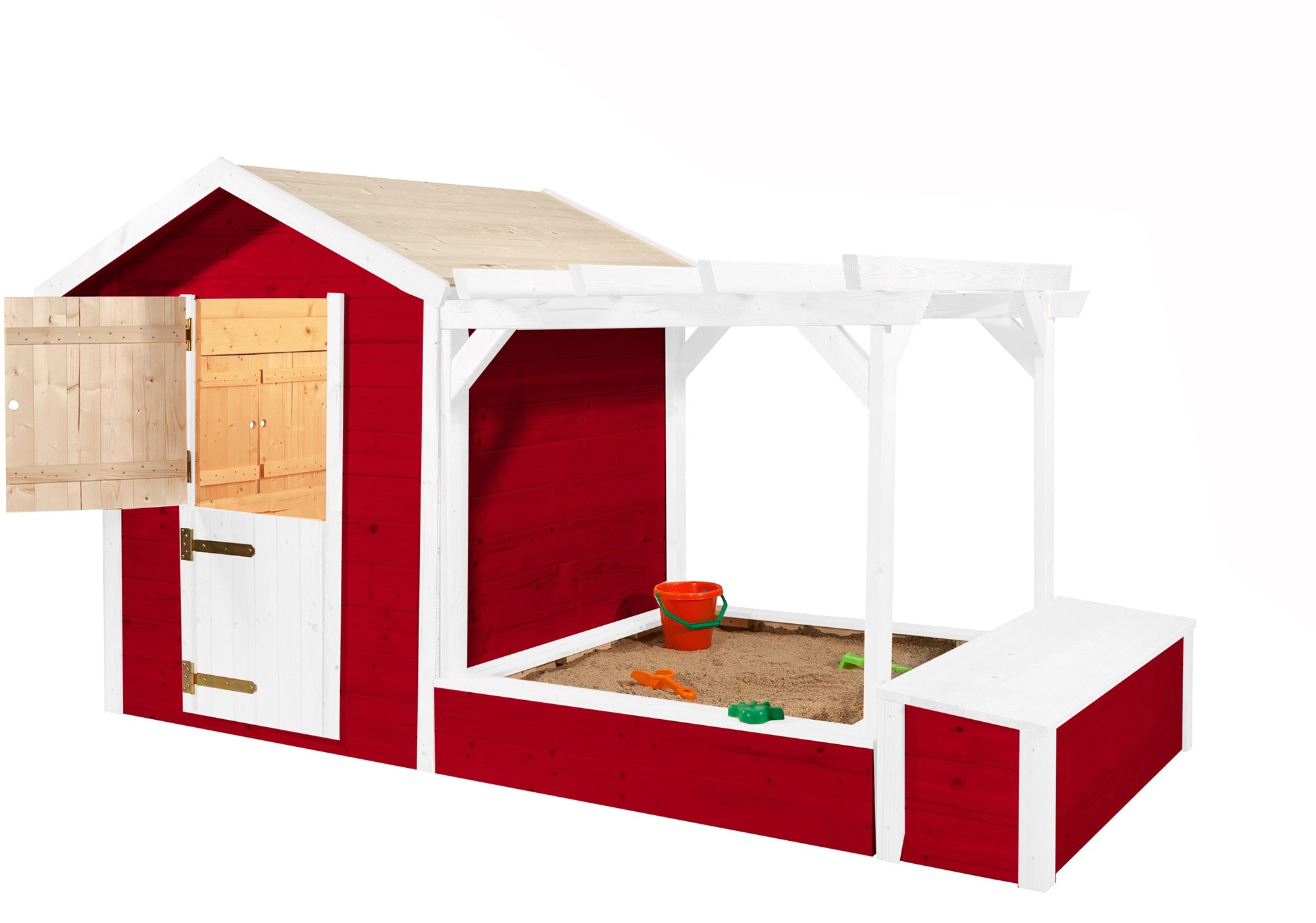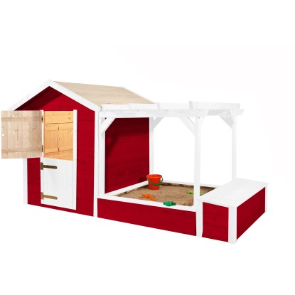 S domečkem na hraní Tabaluga bude čas strávený na zahradě ještě zábavnější. Kompletní sada domečku, pískoviště s pergolou a truhlou rozzáří dětské oči. Domeček včetně pohyblivých 2dílných sklopných dvířek a okenic. Pískoviště lze za slunečného dne zastínit přehozením ručníku nebo deky přes pergolu. V truhle s víkem lze bez problémů uložit dětské hračky.