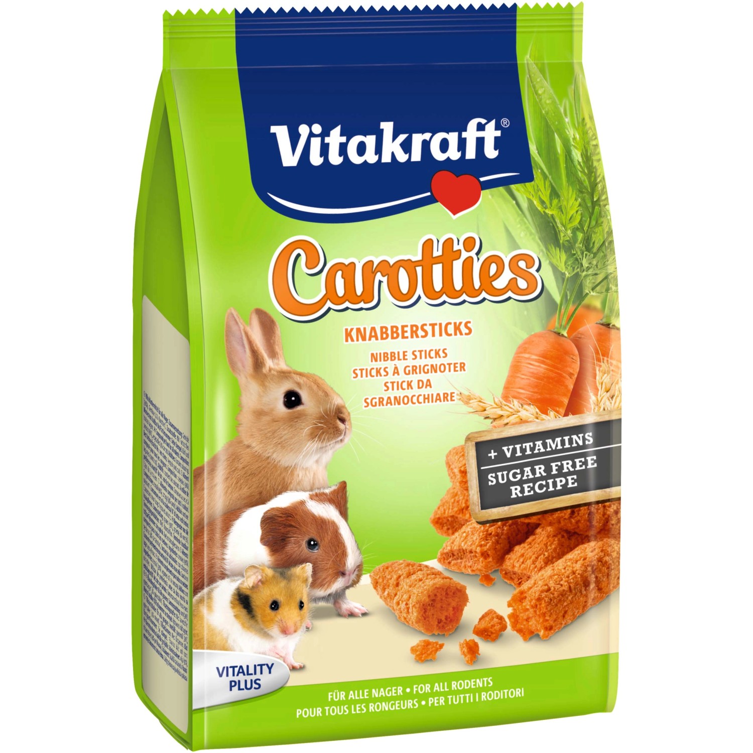 Carotties z vyzrálých obilovin a lahodné mrkve dodá vašim hlodavcům důležité živiny. Křupavé tyčinky s přírodním karotenem jsou obohacené o cenné vitaminy a jednotlivé tyčinky mají délku přibližně 6 cm - ideální na hraní a rozmazlování.