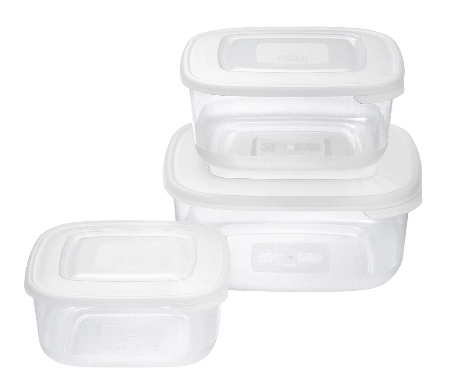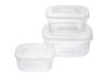Sada 3 plastových dóz bude praktickým i nezbytným pomocníkem v každé domácnosti. Dózy jsou vhodné nejen pro uchování a přenášení jídla, ale také pro ohřev v mikrovlnné troubě (bez víka, max. 400 W, 3 minuty).
