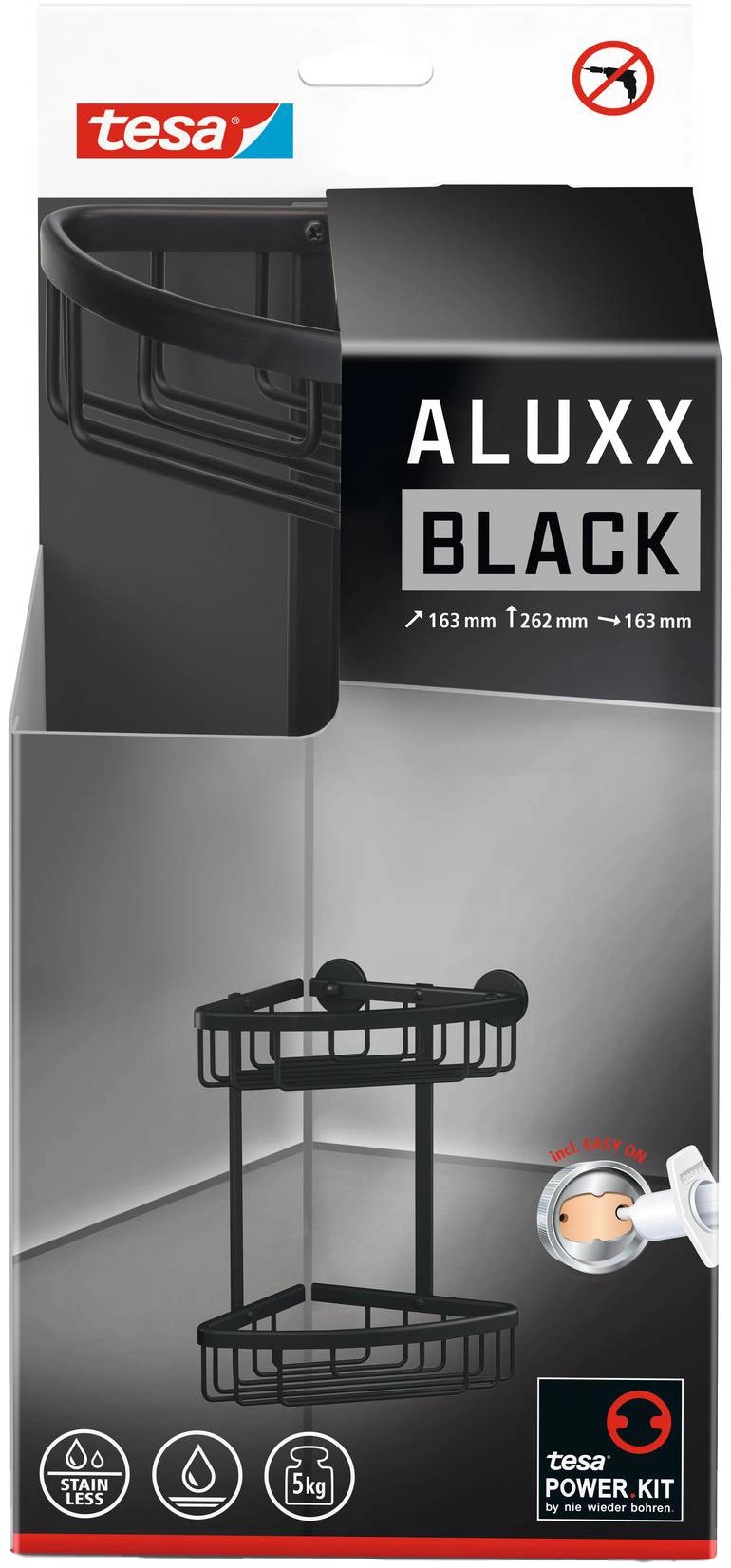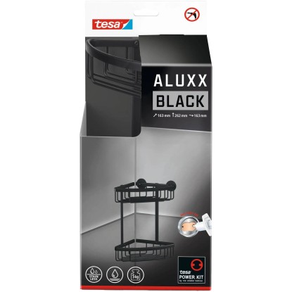 tesa Dvoupatrový rohový košík do sprchy Aluxx, matná černá, 262 x 163 x 163 mm