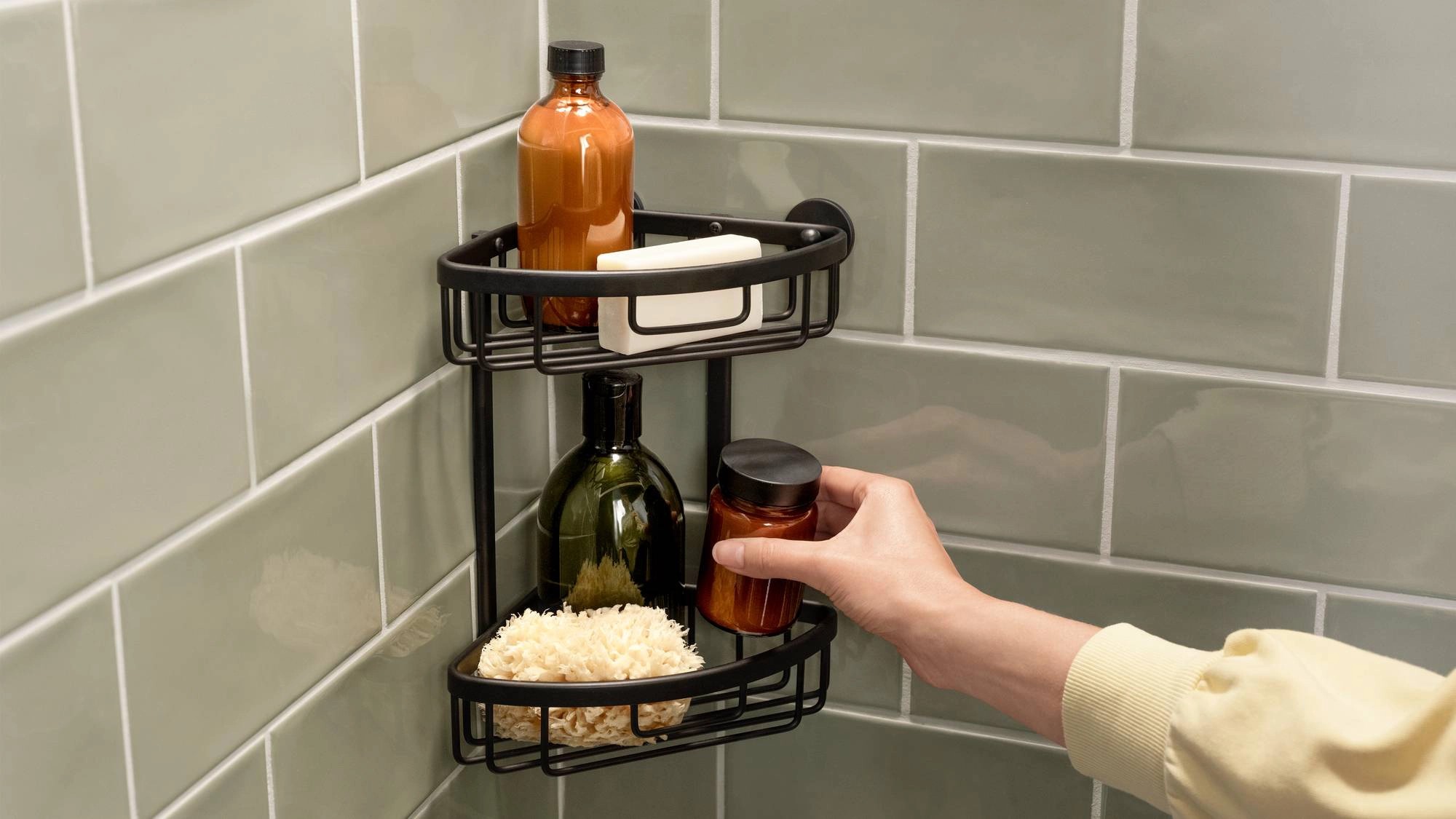 Černé, matné a elegantní provedení - skvělá volba pro koupelny v industriálním a skandinávském stylu, ale také pro moderní vintage a loftový vzhled. Ať už se jedná o moderní, nebo retro koupelnu, toaletní potřeby pro koupání a sprchování lze nyní stylově a bezpečně uložit u vany či ve sprše.