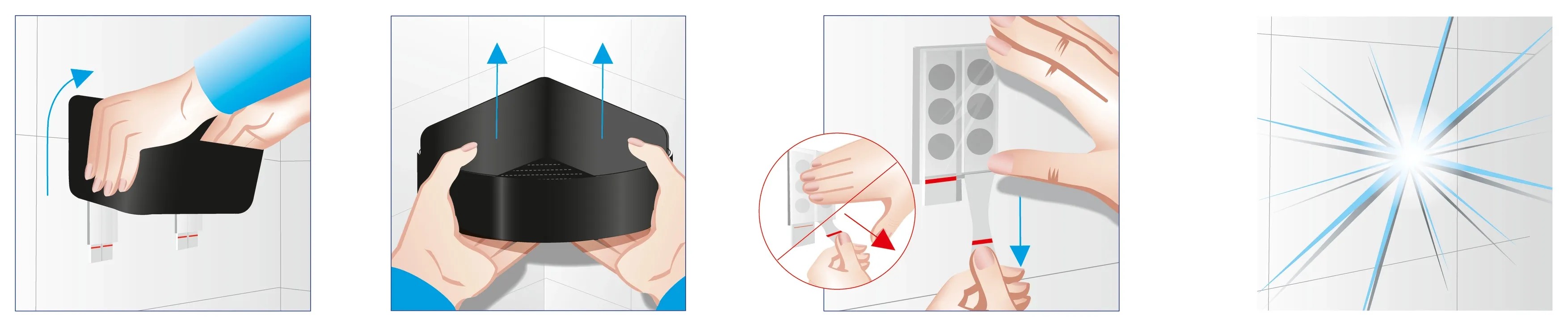 Obsah balení výrobku: 1x košík do sprchy, 2x základnová deska, 6x proužek, 2x hadřík na primer, 1x návod