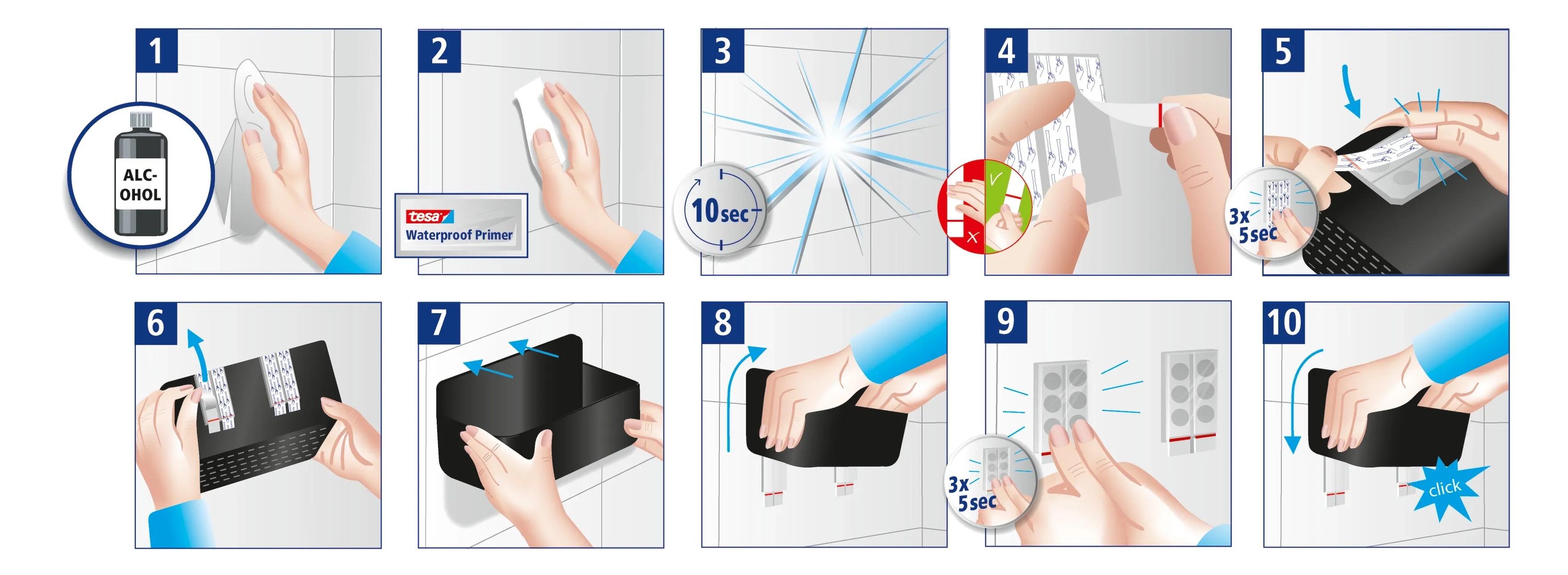 Základní nátěr tesa Powerstrips Waterproof Primer - Pozor: Může způsobit ospalost nebo závratě.