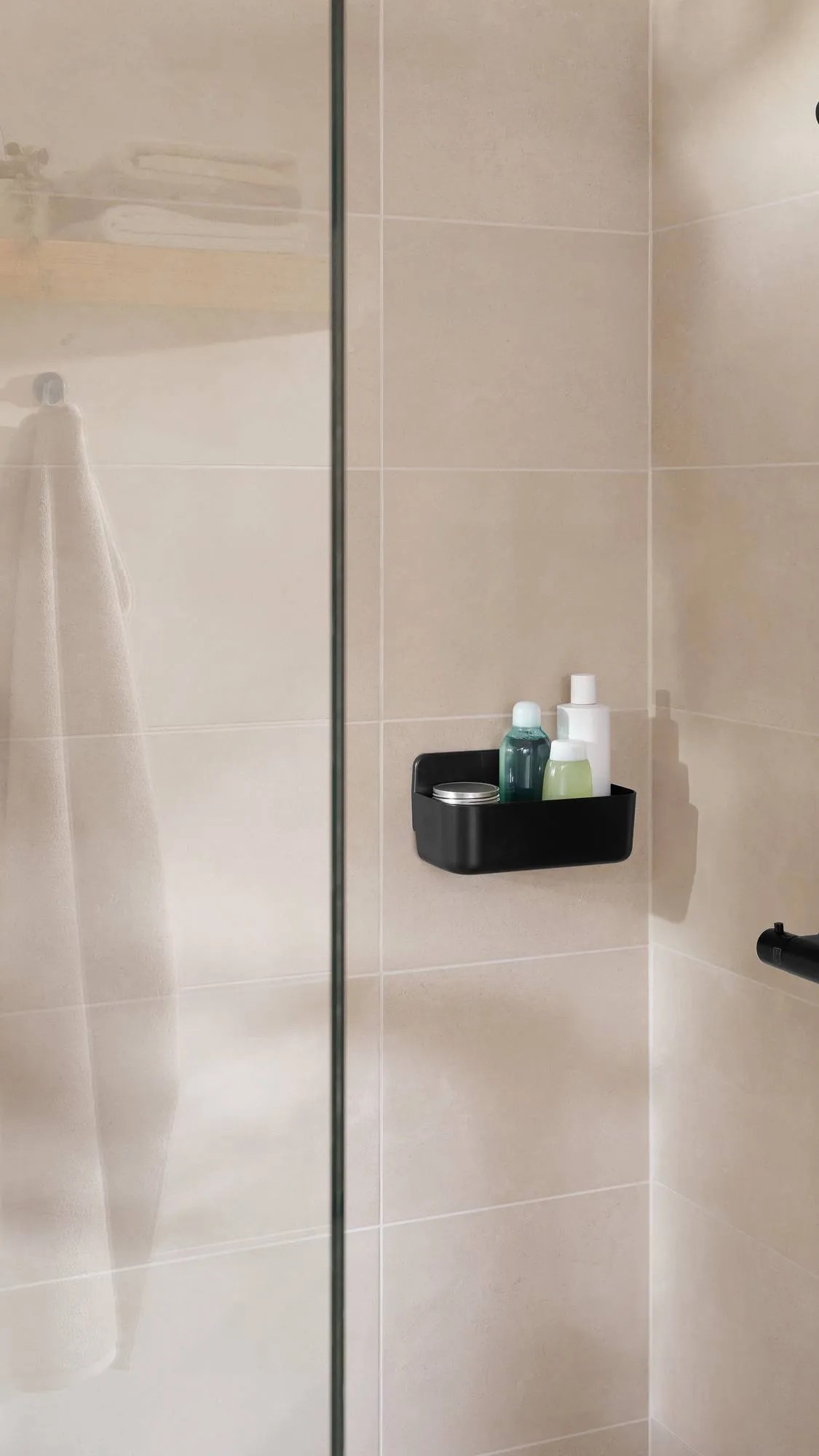 tesa Košík do sprchy Lavaa vel. M, matná černá, 130 x 260 x 110 mm