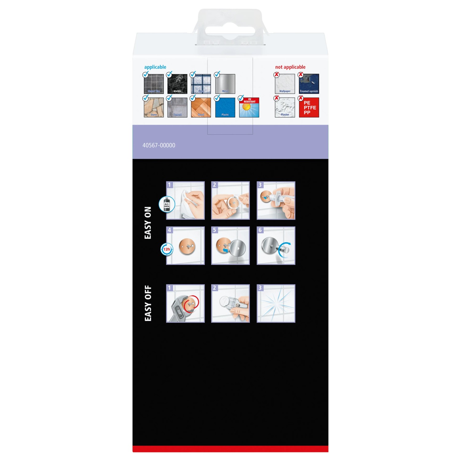 Košík bezpečně drží na stěně bez vrtání díky lepicímu řešení tesa, v případě potřeby jej lze beze stopy odstranit. A následně ho můžete znovu namontovat - stačí zakoupit samostatně prodávaný adaptér BK43-2.