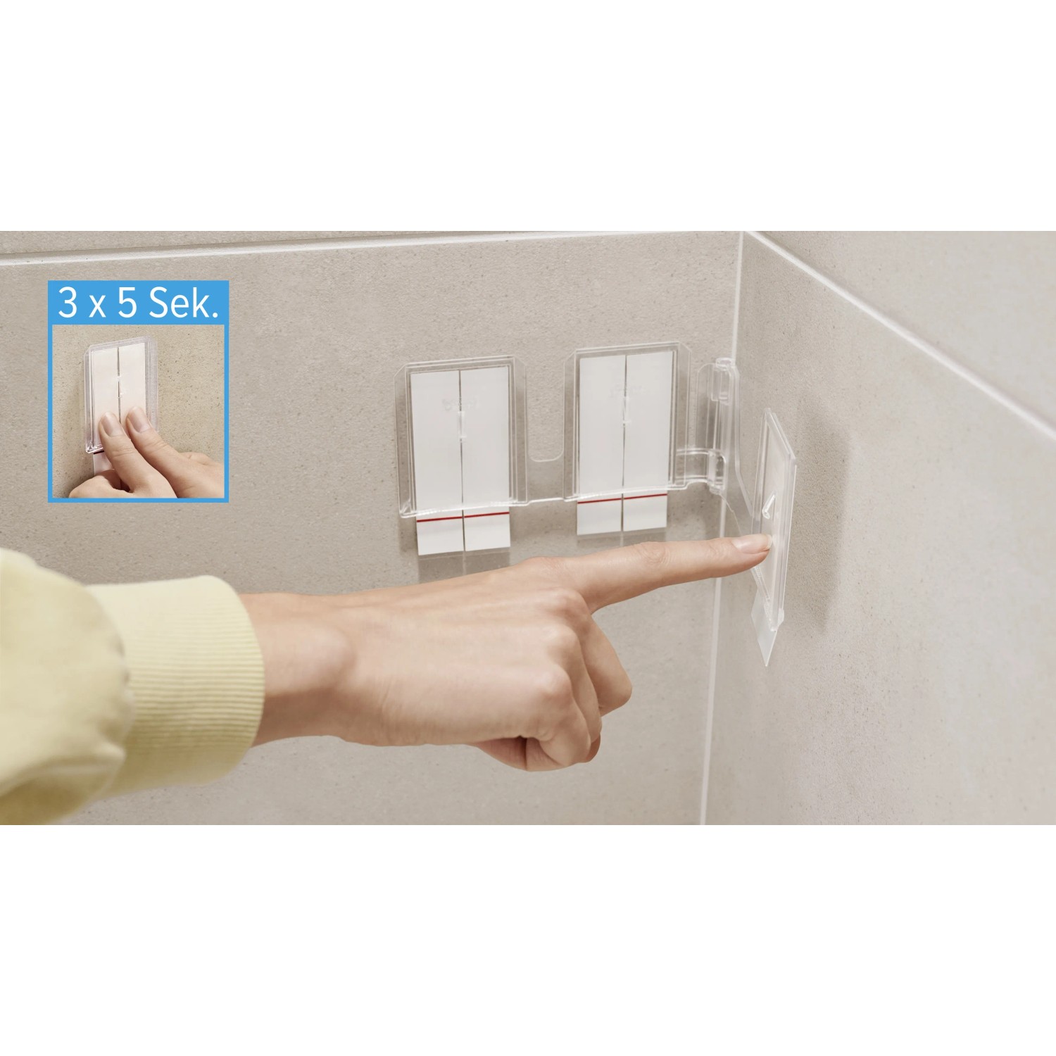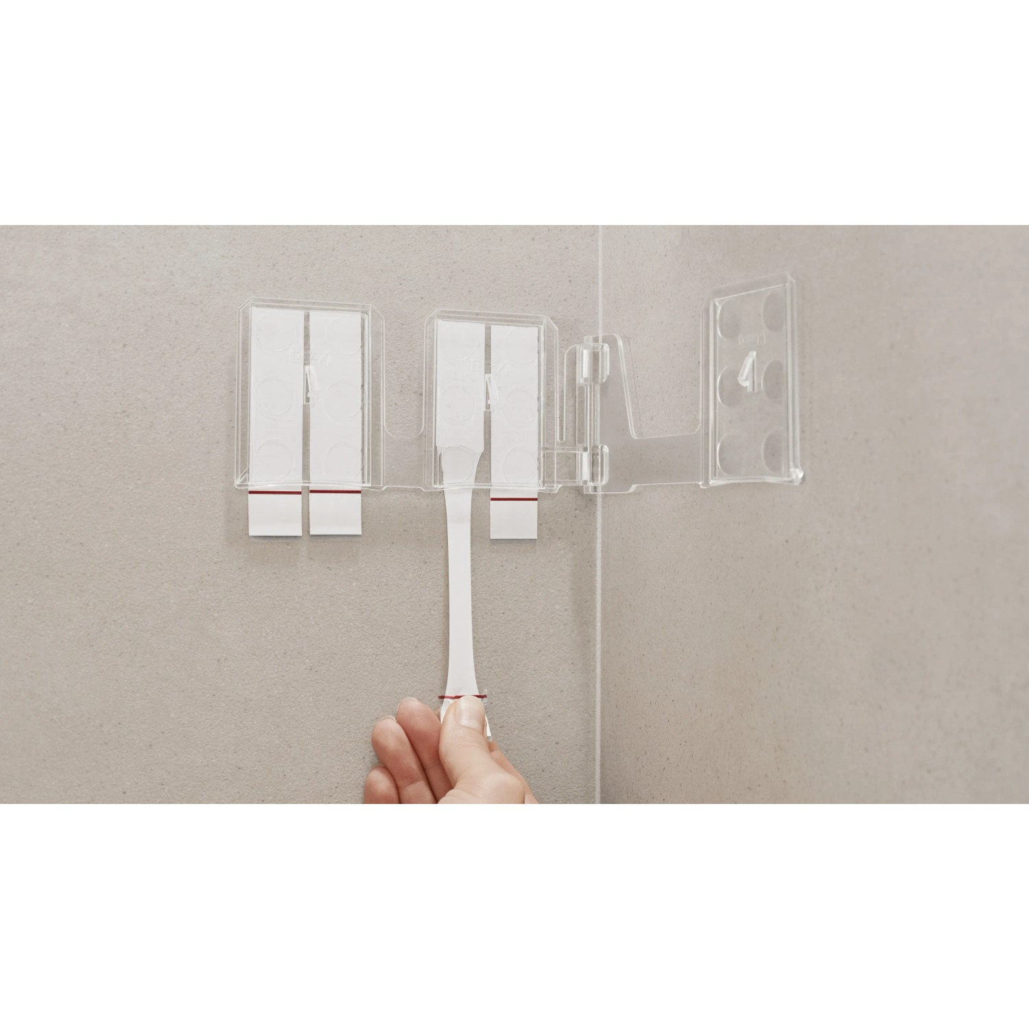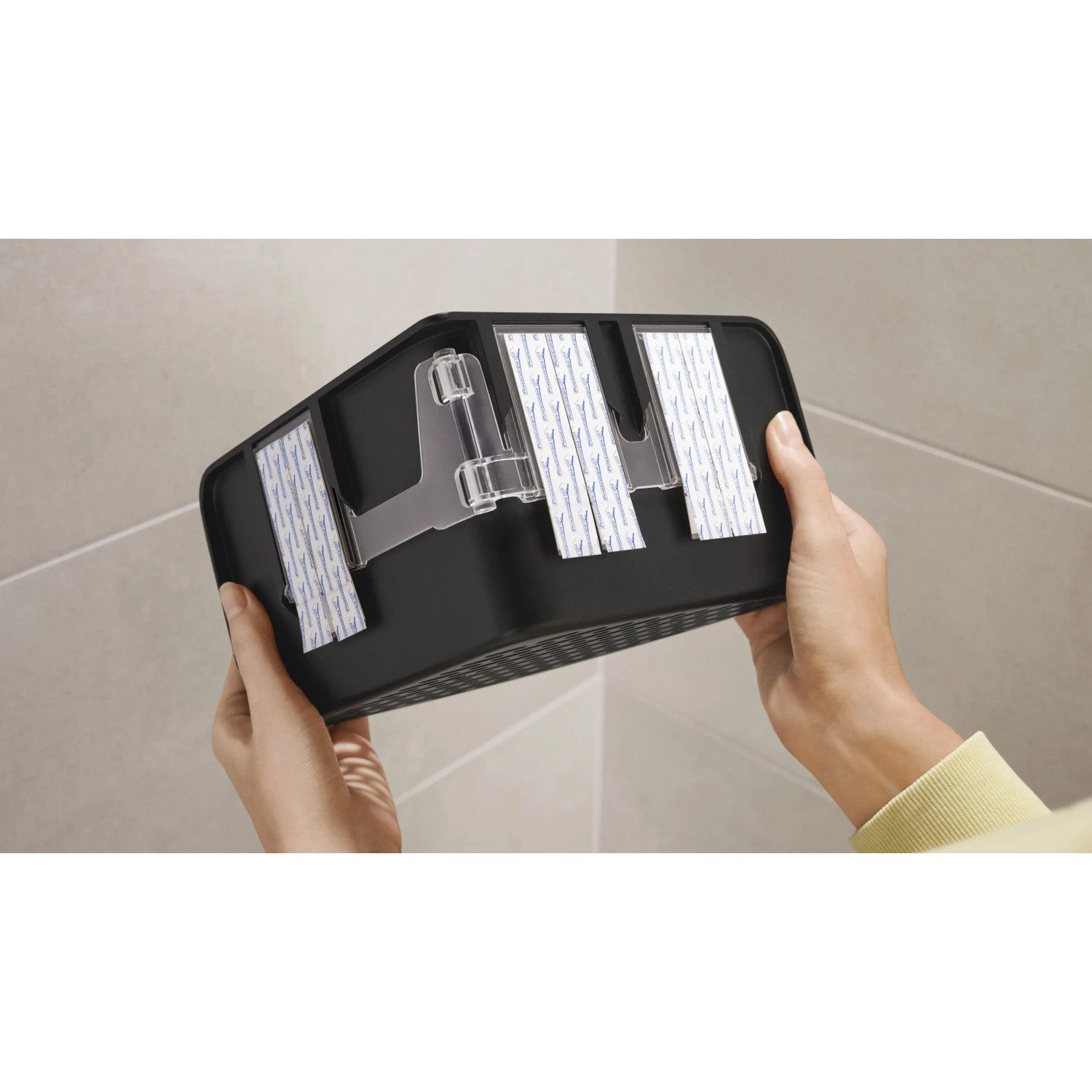 Lepicí proužky tesa Powerstrips Waterproof se hodí zejména pro upevnění předmětů v mokrých prostorách, snadno se odstraňují a nezanechávají stopy. Lze je znovu namontovat pomocí doplňovacích pásků tesa Powerstrips Waterproof XL.