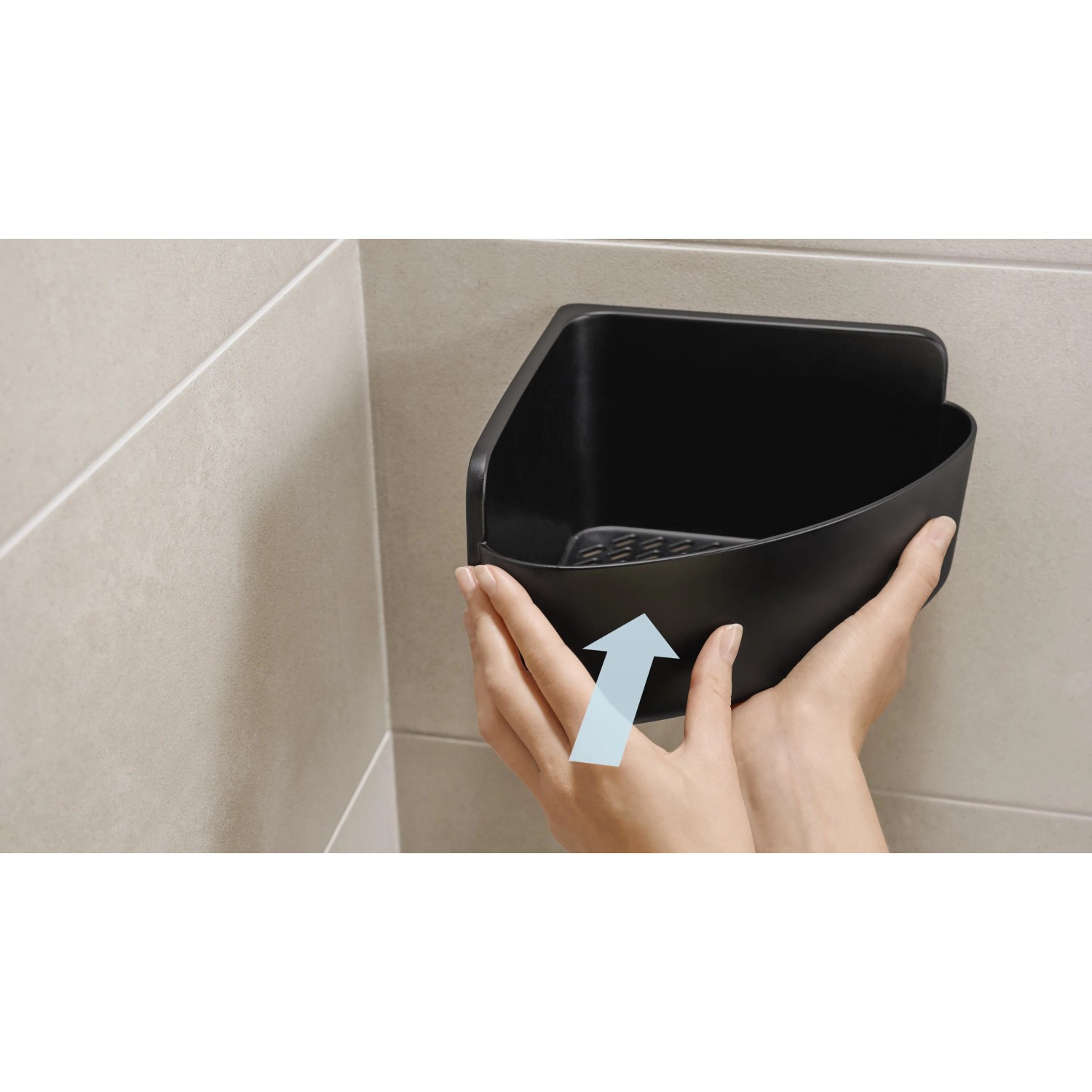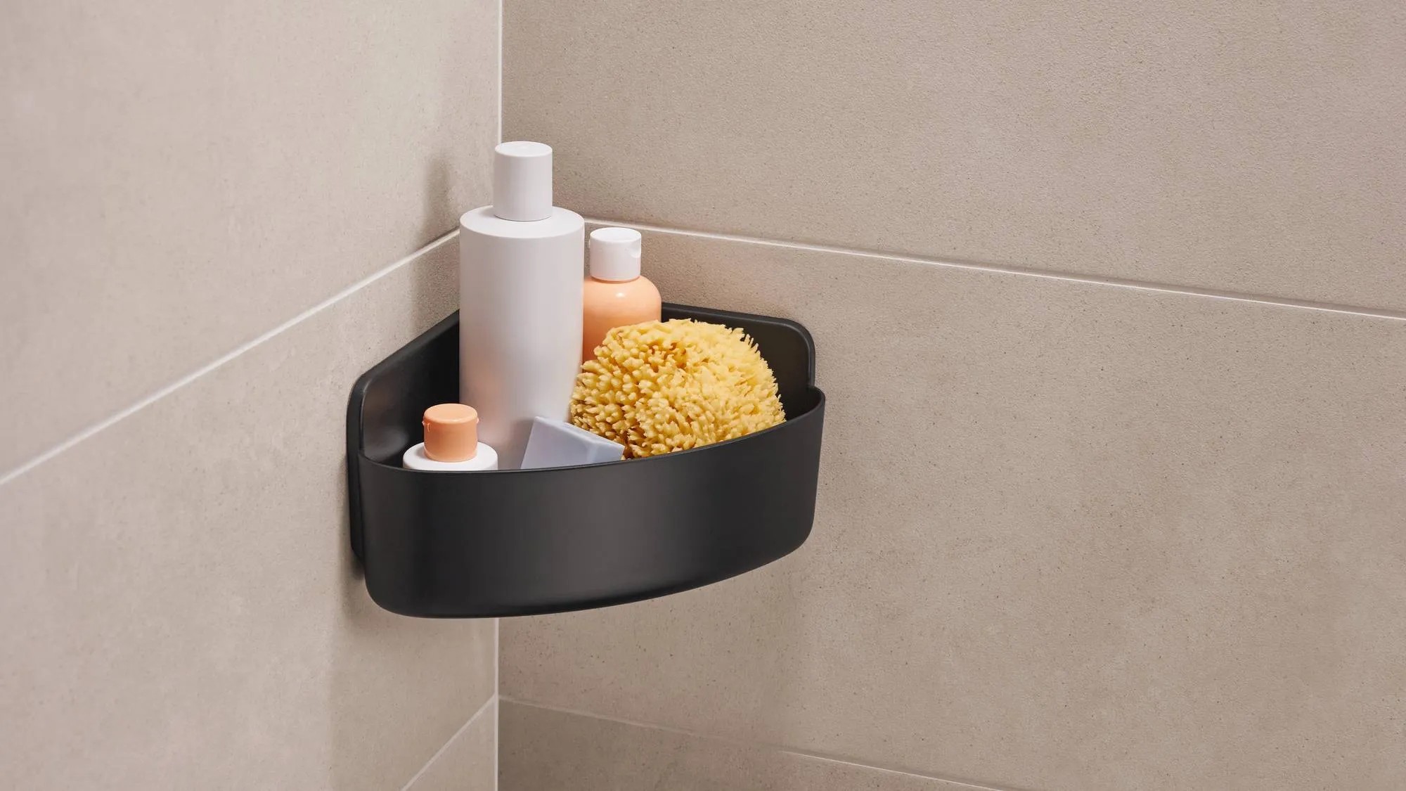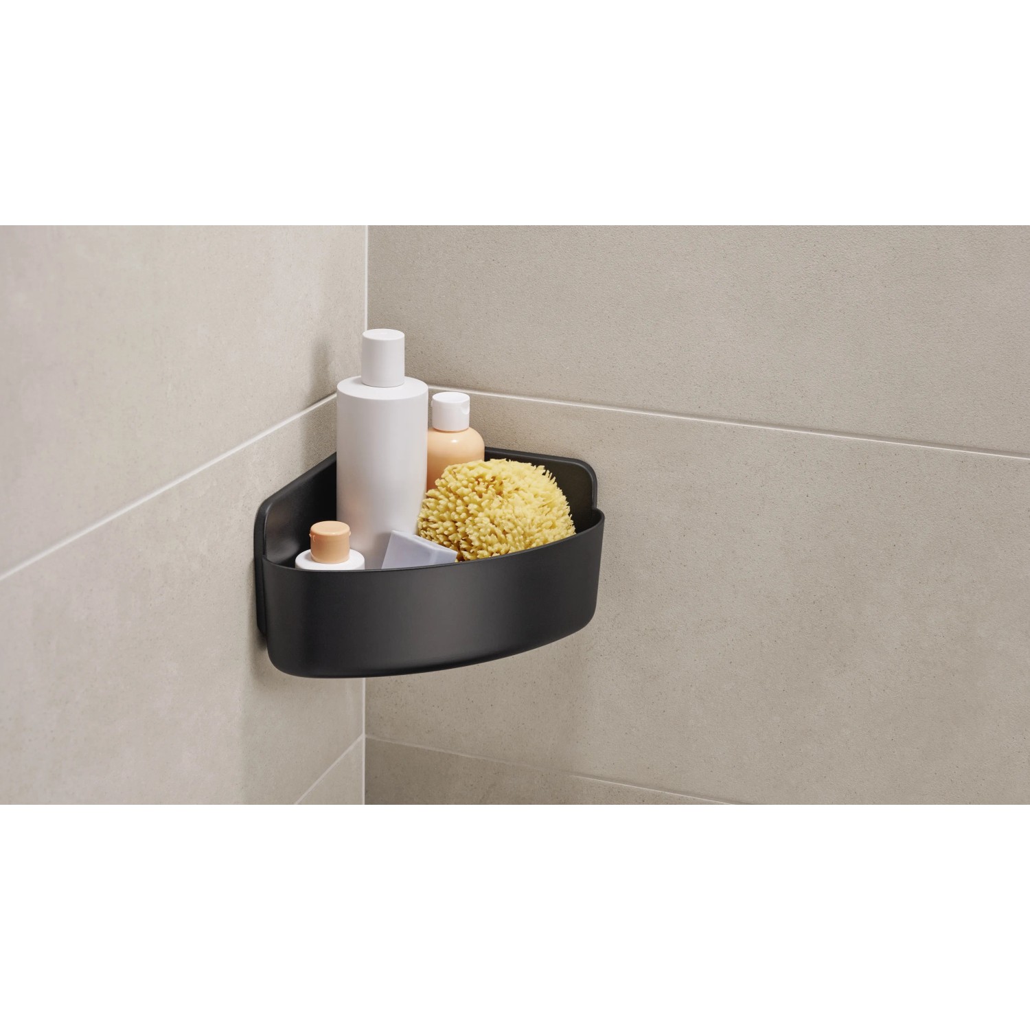 tesa Rohový košík do sprchy Lavaa vel. S, matná černá, 120 x 175 x 175 mm
