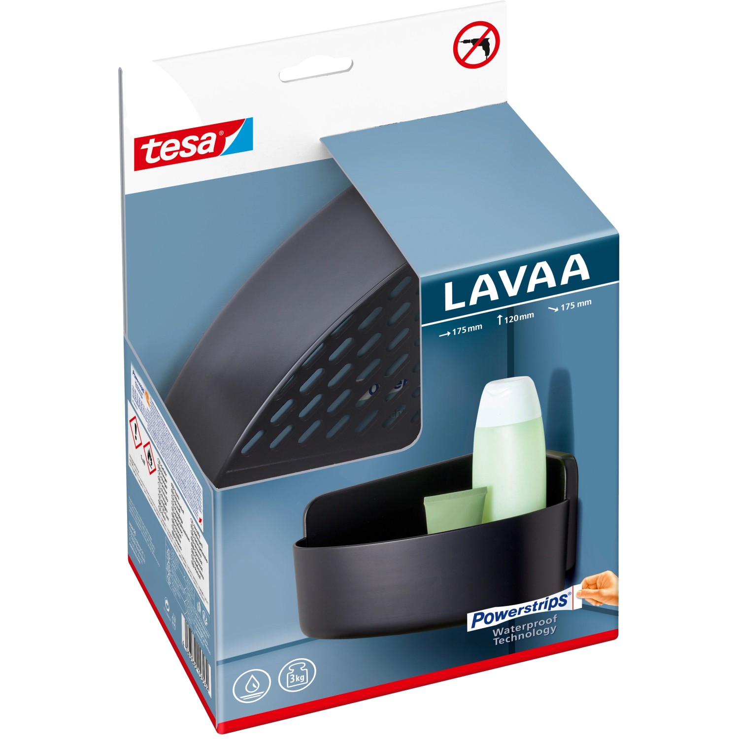 Sprchové košíky tesa Lavaa využívají voděodolnou technologii tesa Powerstrips, což je snadné lepicí řešení bez vrtání. Košík je odolný a má nosnost až 3 kg, i když se namočí. Sprchový košík tesa Lavaa se hodí do koupelen všech stylů, hodí se především pro ukládání přípravků pro péči o pleť a vlasy.