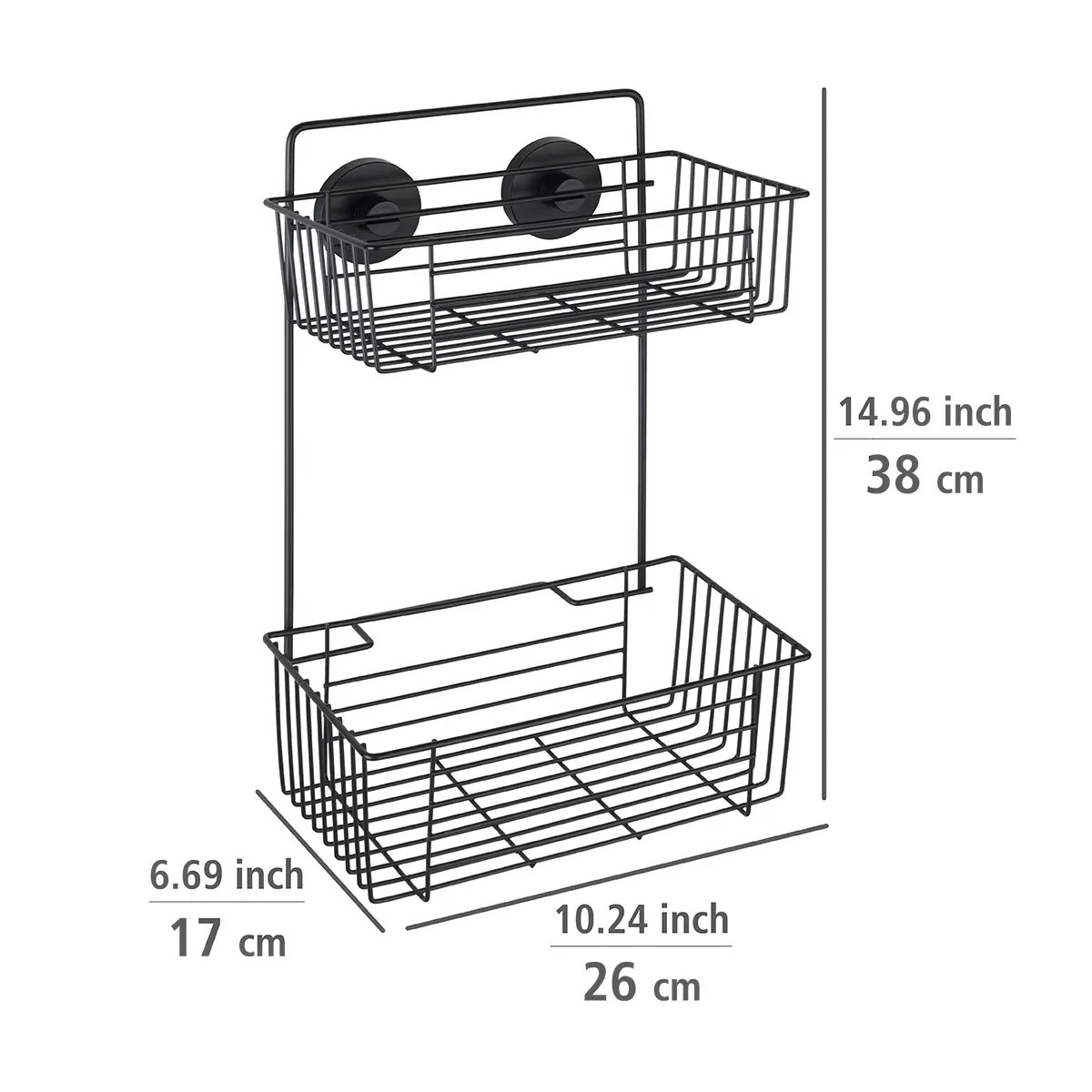 Wenko Dvoupatrová nástěnná police Vacuum-Loc Bari černá 26,5 x 38,5 x 17 cm