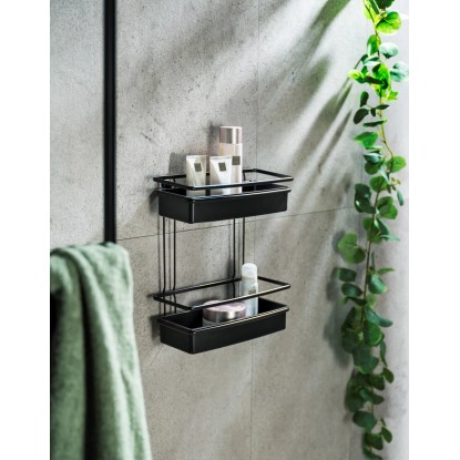 Wenko Koupelnová police Molinella 2patrová, černá, 30 x 34 x 14 cm