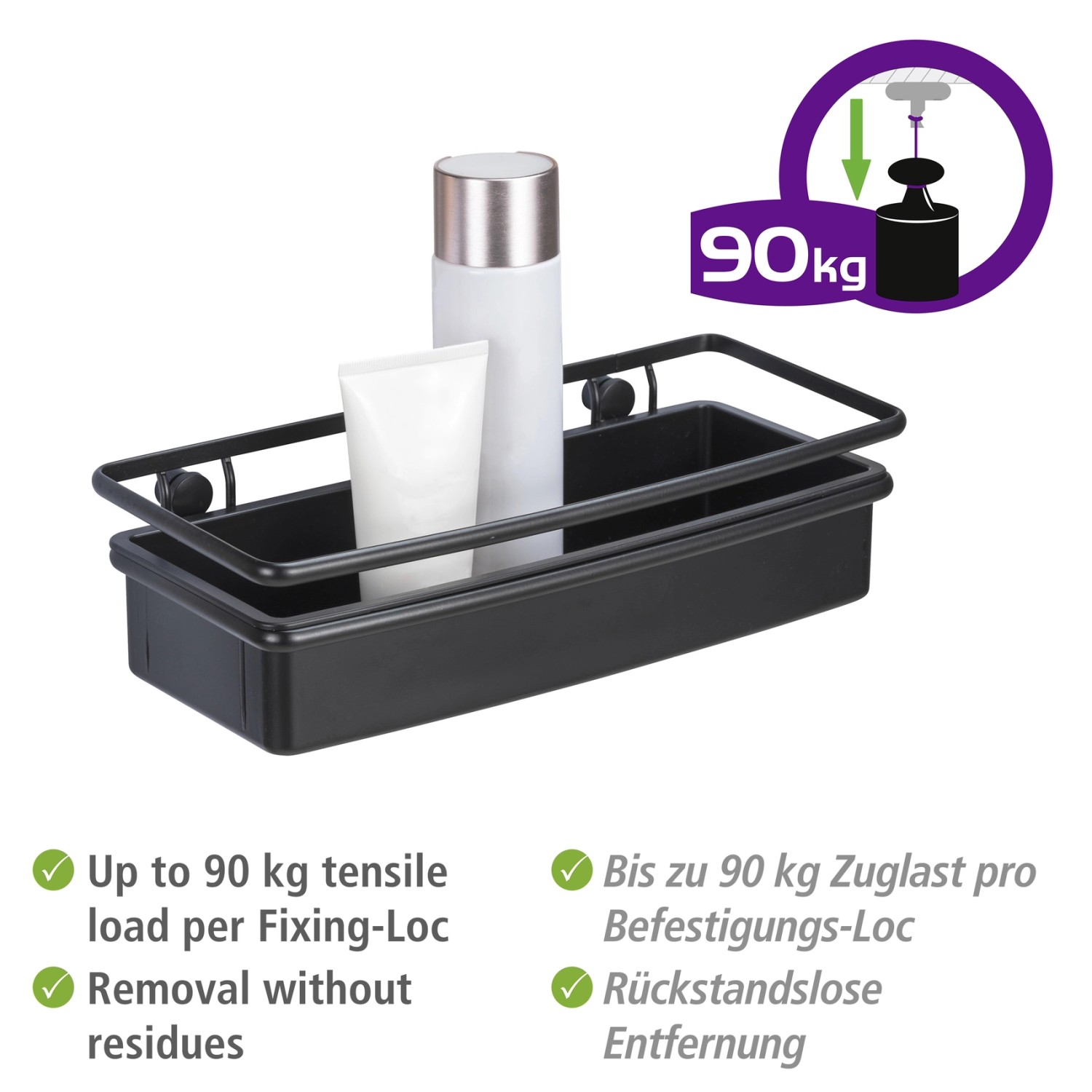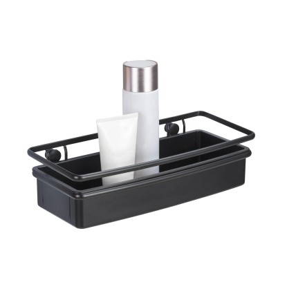 Koupelnová police Wenko Molinella z černého plastu je perfektním řešením pro vytvoření pořádku a elegance ve vaší koupelně. Police nabízí dostatek místa pro vaše koupelnové a toaletní potřeby. Extra hluboký košík zajišťuje stabilitu lahví. Police je navíc kompatibilní s jedinečným lepicím systémem UV-Loc značky Wenko (není součástí balení), který umožňuje rychlou montáž bez nutnosti vrtání. Otvory ve spodní části umožňují snadné odtékání vody.